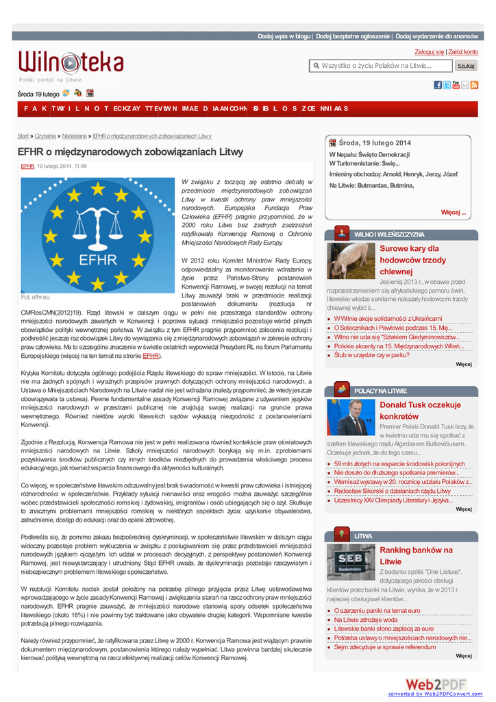 EFHR o międzynarodowych zobowiązaniach Litwy