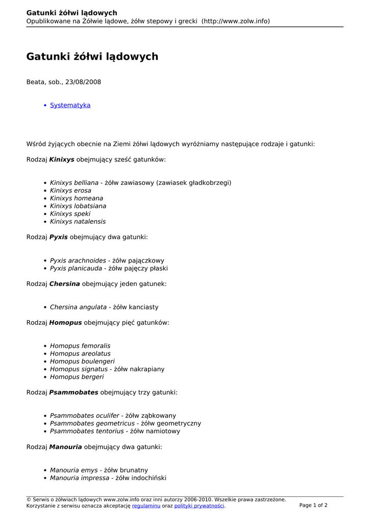 © Serwis o żółwiach lądowych www.zolw.info oraz inni autorzy 2006-2010. Wszelkie prawa zastrzeżone.