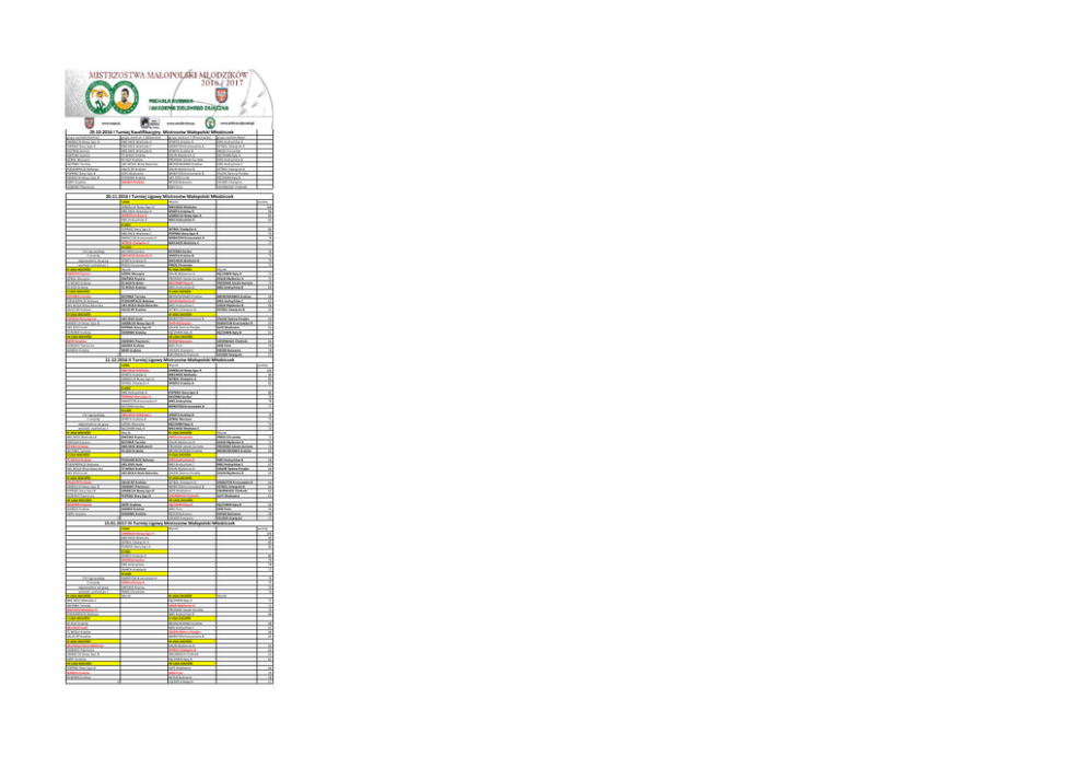 29.10.2016 I Turniej Kwalifikacyjny Mistrzostw Małopolski Młodziczek grupa wschód (Gorlice) SANDECJA Nowy Sącz A POPRAD Stary Sącz A EKSTRIM Gorlice DWÓJKA Krynica GÓRAL Muszyna JEDYNKA Tarnów PODKARPACIE Bobowa POPRAD Stary Sącz B SANDECJA Nowy Sącz B ISKRY Grybów OGNIWO Piwniczna grupa centrum 1 (Wieliczka) MKS MOS Wieliczka A MKS MOS Wieliczka C MKS MOS Wieliczka B TS WISŁA Kraków KS AGH Kraków UKS WOLA Wola Batorska SALOS RP Kraków ALPS Wadowice DOMINIK Kraków WANDA Kraków grupa centrum 2 (Proszowice) SPARTA Kraków A MARATON Krzeszowice A SPARTA Kraków B DALIN Myślenice A PROXIMA Szkoła Gortata BRONOWIANKA Kraków DALIN Myślenice B MARATON Krzeszowice B UKS 2010 Liszki MOSiR Bukowno AMS Pcim grupa zachód (Kęty) MKS Andrychów A SETBOL Oświęcim A PMOS Chrzanów KĘCZANIN Kęty A MKS Andrychów B MKS Andrychów C SETBOL Oświęcim B ZALEW Świnna Poręba KĘCZANIN Kęty B JOCKER Oświęcim GRUNWALD Chełmek 20.11.2016 I Turniej Ligowy Mistrzostw Małopolski Młodziczek I LIGA SANDECJA Nowy Sącz A MKS MOS Wieliczka A SPARTA Kraków A MKS Andrychów A II LIGA POPRAD Stary Sącz A MKS MOS Wieliczka C MARATON Krzeszowice A SETBOL Oświęcim A III LIGA EKSTRIM Gorlice MKS MOS Wieliczka B SPARTA Kraków B PMOS Chrzanów Wyniki GÓRAL Muszyna DWÓJKA Krynica KS AGH Kraków TS WISŁA Kraków Z III Ligi spadają 2 zespoły odpowiednio do grup wschód i zachód po 1 IV LIGA WSCHÓD DWÓJKA Krynica GÓRAL Muszyna TS WISŁA Kraków KS AGH Kraków V LIGA WSCHÓD JEDYNKA Tarnów PODKARPACIE Bobowa UKS WOLA Wola Batorska SALOS RP Kraków VI LIGA WSCHÓD POPRAD Stary Sącz B SANDECJA Nowy Sącz B UKS 2010 Liszki DOMINIK Kraków VII LIGA WSCHÓD ISKRY Grybów OGNIWO Piwniczna WANDA Kraków JEDYNKA Tarnów PODKARPACIE Bobowa UKS WOLA Wola Batorska SALOS RP Kraków UKS 2010 Liszki SANDECJA Nowy Sącz B POPRAD Stary Sącz B DOMINIK Kraków OGNIWO Piwniczna WANDA Kraków ISKRY Grybów 0 Wyniki MKS MOS Wieliczka SPARTA Kraków A SANDECJA Nowy Sącz A MKS Andrychów A punkty 100 90 85 82 SETBOL Oświęcim A POPRAD Stary Sącz A MARATON Krzeszowice A MKS MOS Wieliczka C EKSTRIM Gorlice SPARTA Kraków B MKS MOS Wieliczka B PMOS Chrzanów IV LIGA ZACHÓD DALIN Myślenice A PROXIMA Szkoła Gortata KĘCZANIN Kęty A MKS Andrychów B V LIGA ZACHÓD BRONOWIANKA Kraków DALIN Myślenice B MKS Andrychów C SETBOL Oświęcim B VI LIGA ZACHÓD MARATON Krzeszowice B ALPS Wadowice ZALEW Świnna Poręba KĘCZANIN Kęty B VII LIGA ZACHÓD MOSiR Bukowno AMS Pcim JOCKER Oświęcim GRUNWALD Chełmek 80 79 78 77 76 75 74 73 Wyniki KĘCZANIN Kęty A DALIN Myślenice A PROXIMA Szkoła Gortata MKS Andrychów B 72 71 70 69 BRONOWIANKA Kraków MKS Andrychów C DALIN Myślenice B SETBOL Oświęcim B 68 67 66 65 ZALEW Świnna Poręba MARATON Krzeszowice B ALPS Wadowice KĘCZANIN Kęty B 64 63 62 61 GRUNWALD Chełmek AMS Pcim MOSiR Bukowno JOCKER Oświęcim 60 59 58 57 11.12.2016 II Turniej Ligowy Mistrzostw Małopolski Młodziczek I LIGA MKS MOS Wieliczka SPARTA Kraków A SANDECJA Nowy Sącz A SETBOL Oświęcim A II LIGA MKS Andrychów A POPRAD Stary Sącz A MARATON Krzeszowice A EKSTRIM Gorlice III LIGA MKS MOS Wieliczka C SPARTA Kraków B GÓRAL Muszyna KĘCZANIN Kęty A Wyniki DWÓJKA Krynica JEDYNKA Tarnów MKS MOS Wieliczka B KS AGH Kraków Z III Ligi spadają 2 zespoły odpowiednio do grup wschód i zachód po 1 IV LIGA WSCHÓD MKS MOS Wieliczka B DWÓJKA Krynica KS AGH Kraków JEDYNKA Tarnów V LIGA WSCHÓD TS WISŁA Kraków PODKARPACIE Bobowa UKS WOLA Wola Batorska UKS 2010 Liszki VI LIGA WSCHÓD SALOS RP Kraków SANDECJA Nowy Sącz B POPRAD Stary Sącz B OGNIWO Piwniczna VII LIGA WSCHÓD DOMINIK Kraków WANDA Kraków ISKRY Grybów PODKARPACIE Bobowa UKS 2010 Liszki TS WISŁA Kraków UKS WOLA Wola Batorska SALOS RP Kraków OGNIWO Piwniczna SANDECJA Nowy Sącz B POPRAD Stary Sącz B ISKRY Grybów WANDA Kraków DOMINIK Kraków 0 Wyniki SANDECJA Nowy Sącz A MKS MOS Wieliczka SETBOL Oświęcim A SPARTA Kraków A punkty 100 90 85 82 POPRAD Stary Sącz A EKSTRIM Gorlice MKS Andrychów MARATON Krzeszowice A 80 79 78 77 SPARTA Kraków B GÓRAL Muszyna KĘCZANIN Kęty A MKS MOS Wieliczka C IV LIGA ZACHÓD PMOS Chrzanów DALIN Myślenice A PROXIMA Szkoła Gortata BRONOWIANKA Kraków V LIGA ZACHÓD MKS Andrychów B MKS Andrychów C DALIN Myślenice B ZALEW Świnna Poręba VI LIGA ZACHÓD SETBOL Oświęcim B MARATON Krzeszowice B ALPS Wadowice GRUNWALD Chełmek VII LIGA ZACHÓD KĘCZANIN Kęty B AMS Pcim MOSiR Bukowno JOCKER Oświęcim 76 75 74 73 Wyniki PMOS Chrzanów DALIN Myślenice A PROXIMA Szkoła Gortata BRONOWIANKA Kraków 72 71 70 69 MKS Andrychów B MKS Andrychów C ZALEW Świnna Poręba DALIN Myślenice B 68 67 66 65 MARATON Krzeszowice B SETBOL Oświęcim B GRUNWALD Chełmek ALPS Wadowice 64 63 62 61 KĘCZANIN Kęty B AMS Pcim MOSiR Bukowno JOCKER Oświęcim 60 59 58 57 15.01.2017 III Turniej Ligowy Mistrzostw Małopolski Młodziczek I LIGA SANDECJA Nowy Sącz A MKS MOS Wieliczka SETBOL Oświęcim A POPRAD Stary Sącz A II LIGA SPARTA Kraków A EKSTRIM Gorlice MKS Andrychów SPARTA Kraków B III LIGA MARATON Krzeszowice A GÓRAL Muszyna DWÓJKA Krynica PMOS Chrzanów Wyniki Z III Ligi spadają 2 zespoły odpowiednio do grup wschód i zachód po 1 IV LIGA WSCHÓD MKS MOS Wieliczka C JEDYNKA Tarnów MKS MOS Wieliczka B PODKARPACIE Bobowa V LIGA WSCHÓD KS AGH Kraków UKS 2010 Liszki TS WISŁA Kraków SALOS RP Kraków VI LIGA WSCHÓD UKS WOLA Wola Batorska OGNIWO Piwniczna SANDECJA Nowy Sącz B ISKRY Grybów VII LIGA WSCHÓD POPRAD Stary Sącz B WANDA Kraków DOMINIK Kraków 0 Wyniki punkty 100 90 85 82 80 79 78 77 76 75 74 73 IV LIGA ZACHÓD KĘCZANIN Kęty A DALIN Myślenice A PROXIMA Szkoła Gortata MKS Andrychów B V LIGA ZACHÓD BRONOWIANKA Kraków MKS Andrychów C ZALEW Świnna Poręba MARATON Krzeszowice B VI LIGA ZACHÓD DALIN Myślenice B SETBOL Oświęcim B GRUNWALD Chełmek KĘCZANIN Kęty B VII LIGA ZACHÓD ALPS Wadowice AMS Pcim MOSiR Bukowno JOCKER Oświęcim Wyniki 72 71 70 69 68 67 66 