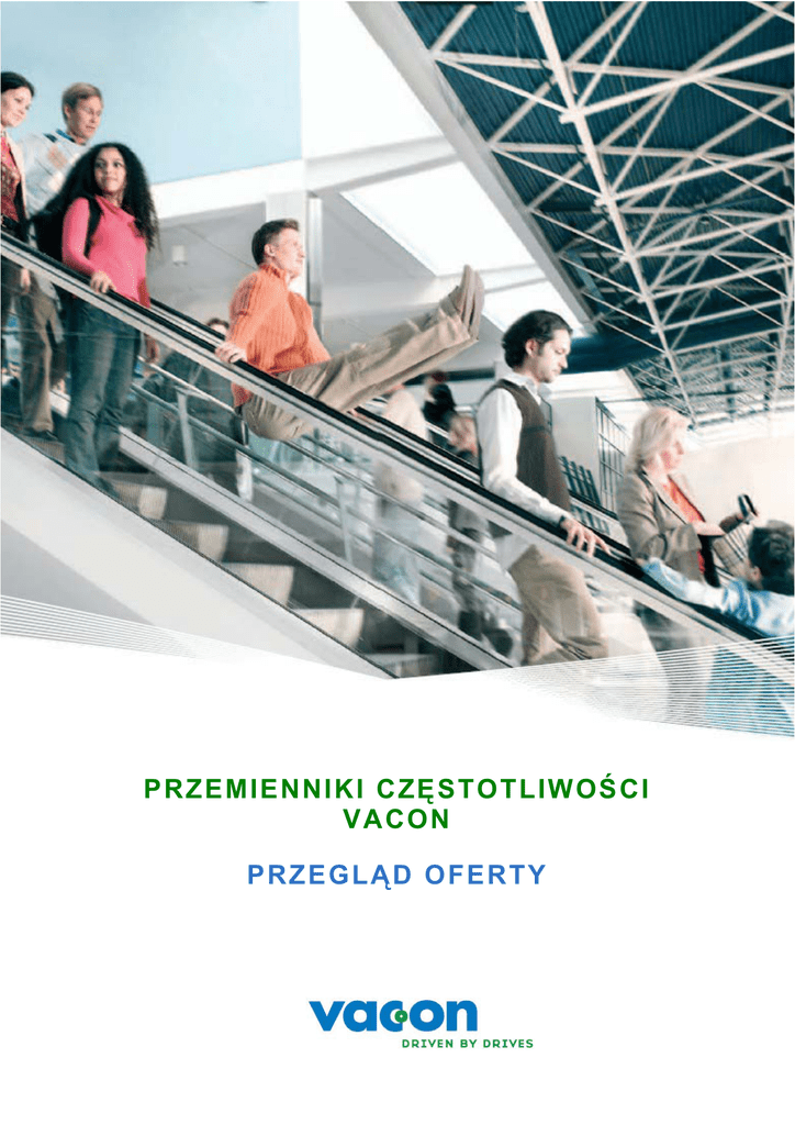 PRZEMIENNIKI CZĉSTOTLIWOĝCI VACON PRZEGLĄD OFERTY PRZEMIENNIKI VACON NX OD 0,25 KW DO 3MW Podstawową cechą wszystkich przemienników Vacon jest peána sprzĊtowa i programowa moduáowoĞü. Koncepcją budowy przemienników Vacon jest peána moduáowoĞü. Jednostka mocy dostĊpna jest w wykonaniu z cháodzeniem Oto kilka przykáadów: trzy róĪne jednostki sterujące, piĊü slotów na powietrzem lub wodą. karty we/wy, zestaw do zmiany na obiekcie stopnia ochrony obudowy przemiennika, dwa sposoby cháodzenia jednostki mocy. Karty Elementy te mogą byü róĪnie ze sobą zestawiane aby jak najlepiej komunikacyjnych, i inne) mogą byü uĪyte we wszystkich trzech dopasowaü siĊ do wymagaĔ uĪytkownika. typach przemienników. W przemiennikach serii NXL moĪna rozszerzeĔ we/wy (we/wy, enkoderowe, protokoáów zastosowaü jedną dodatkową kartĊ we/wy, uzupeániając we/wy Jednostki sterujące NXS i NXP mogą byü odjĊte od moduáu mocy i dostĊpne w standardzie i piĊü kart we/wy w przemiennikach serii zamontowane w innym dogodnym miejscu. Jednostka sterująca NXS, NXP (2 karty we/wy zainstalowane są w standardzie). Mając NXS przeznaczona jest dla typowych aplikacji przemysáowych bez taką moĪliwoĞü rozbudowy we/wy, w áatwy sposób moĪna koniecznoĞci stosowania sprzĊĪenia zwrotnego. Jednostka NXP dopasowaü przemiennik do konkretnej aplikacji. moĪe pracowaü ze sprzĊĪeniem zwrotnym od enkodera, aby zapewniü najwyĪszą precyzjĊ sterowania silnikiem. Przemienniki serii Vacon NXL posiadają wyjmowany siedmio segmentowy panel komunikacyjny LCD, bez wewnĊtrznej pamiĊci. Panel ten sáuĪy do komunikacji z przemiennikiem, ustawiania parametrów i monitoringu pracy napĊdu. Przemienniki serii NXS i NXP posiadają wyjmowany, wielojĊzyczny (m.in. j. polski) panel alfanumeryczny LCD z wbudowaną pamiĊcią. Panel ten sáuĪy do komunikacji z przemiennikiem, ustawiania parametrów i monitoringu pracy napĊdu. Panelem moĪna kopiowaü parametry pomiĊdzy przemiennikami, przechowywaü back-up parametrów jak i inny zestaw parametrów sáuĪący do póĨniejszego automatycznego wgrania do przemiennika. Jednostka sterująca zasilana jest z jednostki mocy. Dla zachowania komunikacji przemiennika (z systemem sterującym poprzez np. fieldbus, operatorem poprzez panel LCD), jednostka sterująca moĪe byü zasilana z zewnĊtrznego Ĩródáa +24V, i dziaáaü nawet gdy zasilanie gáówne zostaáo odáączone. VACON NXL PRZEMIENNIK KOMPAKTOWY VACON NXL DO ZWYKàYCH APLIKACJI VACON NXS DO ZASTOSOWAē PRZEMYSàOWYCH Zakres napiĊü to 208–240 V, 380-500 V i 525–690 V, trzy fazy AC. Vacon NXL Przemiennik kompaktowy Moc i napiĊcie Obudowa EMC 208 - 240 V 0.25 - 0,37 kW, 1 - faza 0.55 - 1.5 kW, 1/3 - fazy IP20 N Karta rozszerzeĔ we/wy OPT-AA Karty rozszerzeĔ OPT-Bx, -Cx Zestaw do instalacji LCD, DRA-02L Zestaw do instalacji na szynie DIN, DIN-MFx Zestaw do podáączenia RS-232, PAN-RS Filtr RFI do poziomu EMC H 380 - 500 V, 3 - fazy 0.37 - 2.2 kW Opcje Vacon NXL Do zwykáych aplikacji 380 - 500 V, 3 - fazy 0.75 - 30 kW IP21 lub IP54 C, H, T Karta rozszerzeĔ we/wy OPT-AA Karty rozszerzeĔ OPT-Bx, -Cx Zestaw do instalacji panela LCD, DRA-02L Zestaw do podáączenia RS-232, PAN-RS Zestaw do montaĪu koánierzowego Vacon NXS Do zastosowaĔ przemysáowych 208 - 240 V, 3 - fazy 0.37 - 30 kW IP21 lub IP54 C, H, L, T Karty rozszerzeĔ OPT-Ax, Bx, -Cx, Zestaw do instalacji panela LCD, DRA-02B Zestaw do montaĪu koánierzowego IP21 lub IP54 (IP00) C, H, L, T Karty rozszerzeĔ OPT-Ax, Bx, -Cx, Dx Zestaw do instalacji panela LCD, DRA-02B Zestaw do montaĪu koánierzowego IP21 lub IP54 L, T, N DostĊpny szeroki zakres opcji np.: okablowanie zaciski aparaty wejĞciowe filtry wyjĞciowe ukáady zabezpieczające 380 - 500 V, 3 - fazy 0.75 - 200 kW 525 - 690 V, 3 - fazy 2.2 - 200 kW Vacon NXP Do wymagających aplikacji 208 - 240 V, 3 - fazy 0.37 - 30 kW 380 - 500 V, 3 - fazy 0.75 - 200 kW (1500 kW) 525 - 690 V, 3 - fazy 2.2 - 200 kW (1500 kW) NXC Rozwiązanie szafowe 380 - 500 V, 3 - fazy 160 - 1500 kW 525 - 690 V, 3 – fazy 200 - 1500 kW NXP Przemiennik cháodzony wodą 380 - 500 V, 3 - fazy 7.5 - 1500 kW IP00 Moduá wymiennika ciepáa DostĊpny szeroki zakres opcji 525 - 690 V, 3 – fazy 5.5 - 1500 kW VACON NXP DLA WYMAGAJĄCYCH APLIKACJI VACON NXP PRZEMIENNIK CHàODZONY WODĄ VACON NXC ROZWIĄZANIE SZAFOWE