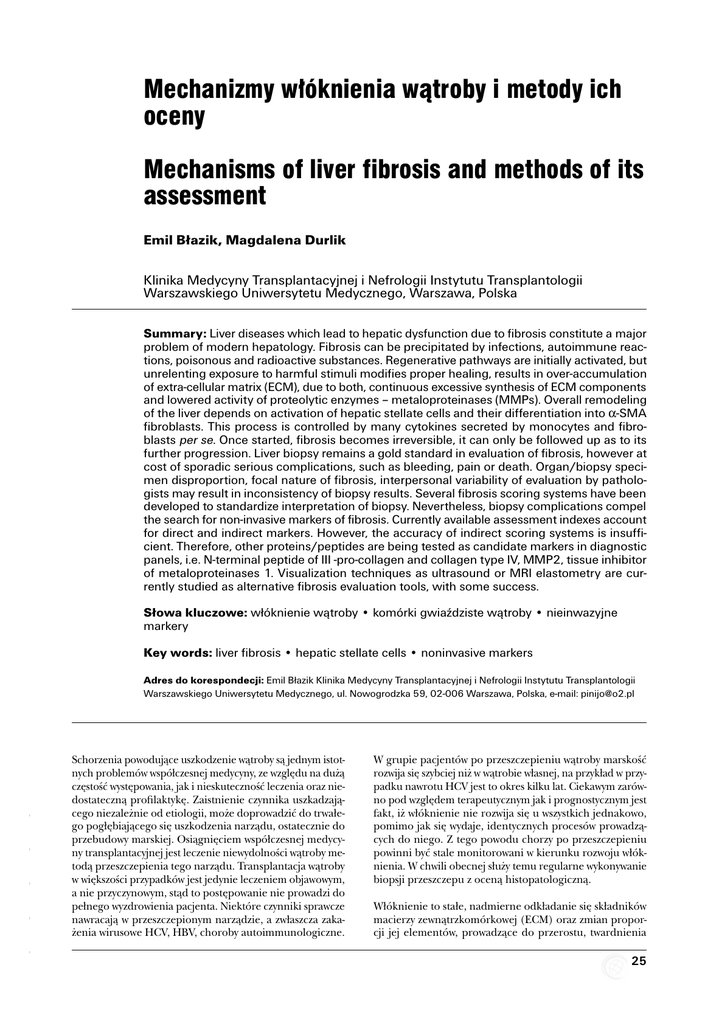 Mechanizmy włóknienia wątroby i metody ich oceny Mechanisms of
