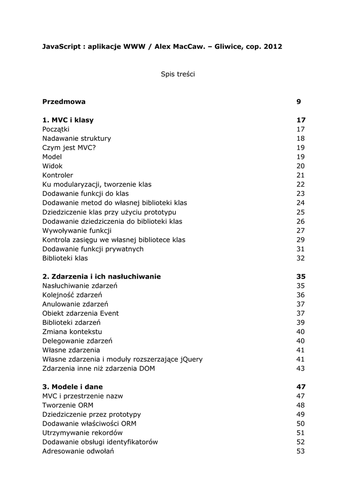 JavaScript : aplikacje WWW / Alex MacCaw. – Gliwice, cop. 2012