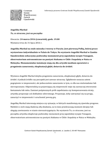 Nota prasowa - Centrum Sztuki Współczesnej Zamek Ujazdowski