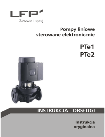 Instrukcja oryginalna Leszno, dnia 04. 01.2010 r. -2- SPIS TREŚCI 1. INFORMACJE DOTYCZĄCE BEZPIECZEŃSTWA. 1.1. Informacje ogólne. 1.2. Uwagi i ostrzeżenia dotyczące bezpieczeństwa. 1.3. Kwalifikacje personelu. 2. OPIS TECHNICZNY. 2.1. Budowa pomp. 2.2. Przeznaczenie. 2.3. Ogólne dane techniczne. 2.4. Klucz oznaczeń. 2.4.1. Oznaczenia wykonania materiałowego dławnicy. 2.5. Parametry i dane techniczne 2.6. Wartości współczynnika minimalnej energooszczędności MEI. 3. PODŁĄCZENIE I OBSŁUGA. 3.1. Transport i przechowywanie. 3.2. Ustawienie i montaż pomp. 3.3. Pozycje montażowe. 3.4. Płyta fundamentowa. 3.5. Podłączenie elektryczne. 3.5.1. Pozostałe podłączenia elektryczne. 3.5.2. Przewody elektryczne. 3.6. Uruchomienie. 3.7. Zabezpieczenie przed mrozem. 3.8. Nastawy pompy. 3.8.1. Ustawienia fabryczne. 3.8.2. Przyciski obsługowe. 3.8.3. Nastawienie wysokości podnoszenia. 3.8.4. Nastawienie rodzaju regulacji. 3.8.5. Ustawienie charakterystyki MAX. 3.8.6. Ustawienie charakterystyki MIN. 3.8.7. Włączanie/wyłączanie pompy. 3.9. Pilot. 3.9.1. Menu PRACA. 3.9.1.1. Wartość zadana. 3.9.1.2. Tryb praca. 3.9.1.3. Sygnalizacja zakłóceń. 3.9.2. Menu STATUS. 3.9.2.1. Aktualna wartość zadana. 3.9.2.2. Tryb praca. 3.9.2.3. Wartość rzeczywista. 3.9.2.4. Obroty. 3.9.2.5. Pobór mocy i zużycie energii. 3.9.2.6. Godziny pracy. 3.9.3. Menu INSTALACJA. 3.9.3.1. Rodzaje regulacji. 3.9.3.2. Sygnał wartości zadanej. 3.9.3.3. Przyciski na pompie. 3.9.3.4. Numer pompy. 3.9.3.5. Wejścia cyfrowe. 3.10. Zewnętrzne rozkazy sterujące. 3.10.1. Wejście dla zewnętrznego ZAŁ/WYŁ. 3.10.2. Wejście cyfrowe. 3.10.3. Zewnętrzny sygnał wartości zakłóceń. 3.10.4. Priorytet ustawień. 3.10.5. Lampki sygnalizacji i przekaźnik sygnalizacji zakłóceń. 3.10.6. Kontrola stanu izolacji. 3.11. Przegląd zakłóceń. 3.12. Utylizacja. 4. PUNKTY SERWISOWE. 5. GWARANCJA. -3- 4 4 4 4 5 5 6 6 6 6 7 7 7 7 7 8 8 9 10 12 12 12 13 14 14 14 15 15 15 15 15 17 17 17 17 18 18 18 18 18 18 19 19 19 19 19 19 20 20 20 20 21 22 23 24 25 25 26 27 1. INFORMACJE DOTYCZĄCE BEZPIECZEŃSTWA. 1.1. Informacje ogólne. W instrukcji obsługi zawarto istotne informacje dotyczące bezpiecznego instalowania i użytkowania wyrobu. Przed podjęciem czynności związanych z zainstalowaniem, uruchomieniem i użytkowaniem należy dokładnie przeczytać niniejszą instrukcję obsługi. Instrukcję należy zachować do przyszłego użytku w miejscu dostępnym przez obsługę. 1.2. Uwagi i ostrzeżenia dotyczące bezpieczeństwa. Instrukcja obsługi zaopatrzona jest w uwagi i ostrzeżenia dotyczące bezpieczeństwa. Znak umieszczono obok zaleceń zawartych w instrukcji, których nieprzestrzeganie może wpływać na bezpieczeństwo. Znak UWAGA umieszczono obok zaleceń zawartych w instrukcji, które należy wziąć pod uwagę ze względu na bezpieczną pracę urządzenia. W celu zapewnienia bezpieczeństwa podczas montażu, obsługi i eksploatacji należy: - stosować urządzenie zgodnie z przeznaczeniem, - wykluczyć zagrożenie powodowane prądem elektrycznym, - wykonywać prace przy urządzeniu, przy wyłączonym napięciu zasilania, - sprawdzić bezwzględnie, czy silnik jest odłączony od zasilania przed odłączaniem przewodów z puszki silnika, odłączając najpierw przewód fazowy, a następnie przewód ochronny, - przed demontażem opróżnić instalację lub zamknąć zawory odcinające na wlocie i wylocie pompy, - odczekać przed demontażem aż temperatura elementów obniży się poniżej 50˚C, - stosować przy wymianie i naprawie wyłącznie oryginalne części zamienne. Nieprzestrzeganie tego zalecenia zwalnia producenta z odpowiedzialności za jakiekolwiek skutki mogące powstać z zastosowania innych części, - ponownie zamontować lub załączyć wszelkie urządzenia ochronne i zabezpieczające po zakończeniu prac. 1.3. Kwalifikacje personelu. Prace związane z montażem, podłączeniem do sieci elektrycznej, obsługą, konserwacją i przeglądem powinien wykonywać wykwalifikowany personel, posiadający odpowiednie uprawnienia. -4- 2. OPIS TECHNICZNY. 2.1. Budowa pomp. Pompy PTe stanowią typoszereg elektronicznych pomp liniowych. Korpus pompy posiada króciec ssący i tłoczny w układzie „in -line”, których osie leżą w jednej płaszczyźnie. W pokrywie pompy zamontowane jest dławnica mechaniczna BAQE. Do napędu zastosowano silnik elektryczny z przetwornicą częstotliwości, który połączony jest z częścią pompową przy pomocy sprzęgła łubkowego. Całość tworzy zwartą konstrukcję. W pompach typu PTe korpus pompy, wirnik i pokrywa wykonane są z żeliwa. 1. Silnik 2. Podstawa silnika 3. Wał silnika 4. Sprzęgło łubkowe 5. Osłona sprzęgła 6. Śruba odpowietrzająca 7. Dławnica 8. Pierścień uszczelniający 9. Pierścień labiryntu 10. Wirnik 11. Łożysko 12. Korpus W pompach PTe stosuje się uszczelnienie mechaniczne typu BAQE. -5- 2.2. Przeznaczenie. Pompy PTe przeznaczone są do pompowania wody czystej i lekko zanieczyszczonej w instalacjach wodociągowych, hydroforowych, zestawach pompowych, ciepłownictwie i innych instalacjach np. przemysłowych. Stosowane są także do pompowania innych nieagresywnych cieczy w stosunku do materiałów, z których wykonana jest pompa. Dla cieczy o zwiększonej gęstości i (lub) lepkości względem wody wymagane jest sprawdzenie i dobranie odpowiedniej mocy silnika przy danych parametrach wydajności i wysokości podnoszenia. Pompy PTe nie powinny być używane do tłoczenia płynów łatwopalnych i wybuchowych np. takich jak olej napędowy, benzyna. 2.3. Ogólne dane techniczne. Wydajność Wysokość podnoszenia max. Max. ciśnienie robocze Temperatura czynnika Temperatura otoczenia Średnica przyłączy Napięcie zasilające Częstotliwość Stopień ochrony Klasa izolacji Poziom dźwięku do 380 m³/h do 90 m 1,6 MPa od - 25˚C do 140˚C do 40˚C od 32 do 150 mm 3~380-415V 50 Hz IP 55 lub IP 54 F do 69 dB (A) 2.4. Klucz oznac