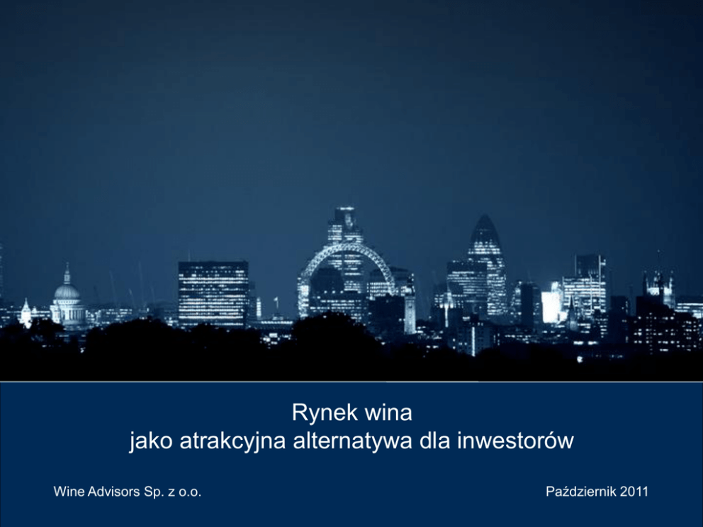 Rynek wina jako atrakcyjna alternatywa dla inwestorów Wine Advisors Sp. z o.o. Październik 2011 Streszczenie • • • Rynek wina jest atrakcyjną alternatywą dla wszystkich inwestorów, poszukujących satysfakcjonujących stóp zwrotu i jednocześnie dywersyfikacji - niskiej korelacji z pozostałymi klasami aktywów. W swojej obecnej postaci rynek jest wystarczająco rozwinięty (łatwość wyceny, satysfakcjonująca płynność), a jednocześnie wolny jest od „przypadłości” związanych z większością innych rynków inwestycyjnych (nadmierne lewarowanie, negatywny wpływ instrumentów pochodnych, krótka sprzedaż, algo – trading,…) Wyniki historyczne oraz fundamenty definiujące perspektywy rynku uzasadniają optymizm co do realizowalnych stóp zwrotu. Wine Advisors Sp. z o.o. www.wineadvisors.pl Wielkość rynku, główni aktorzy Całkowita wartość zapasów Fine Wine szacowana jest na kwotę 12 – 15 mld USD. Wartość win inwestycyjnych w profesjonalnie zarządzanych funduszach (funkcjonuje ich ponad sto) szacować można na ok. 300 mln USD Wartość rocznej produkcji „First Growths” to ok 600 mln USD (mniej niż 90 000 skrzynek) Wine Advisors Sp. z o.o. www.wineadvisors.pl Specyfika rynku win inwestycyjnych Podstawową cechą definiującą specyfikę rynku win inwestycyjnych jest trwała, strukturalna nierównowaga popytu i podaży. 1. Podaż jest limitowana prawnie (zdefiniowane Chateaux, zdefiniowany i ograniczony obszar uprawy, limitowana produkcja) 2. Z każdym dniem realnie dostępna podaż maleje – wino jest wypijane! Wartość materialna w 100% zamienia się w wartość emocjonalną. Wine Advisors Sp. z o.o. www.wineadvisors.pl Specyfika rynku win inwestycyjnych 3. 4. Popyt napędzany jest przez – Nowych konsumentów, głównie z Chin, Hongkongu, Rosji i Indii – Rosnącą liczbę inwestorów Postępujący rozwój gospodarczy Chin, Rosji i Indii poszerzać będzie „bazę ludzką” potencjalnych konsumentów (960 tysięcy milionerów w Chinach!). (Jednoznacznie pozytywne są także „miękkie” czynniki – rosnąca świadomość i moda na konsumpcję jakościowych win w tym regionie. (Lafite 2008 to najbardziej pożądany biznesowy „prezent”…) Wine Advisors Sp. z o.o. www.wineadvisors.pl 6 Liv-ex Investables Index 5 X 2003 – X 2011 S&P 500 Index Euro STOXX 50 Pr Index 4 WIG20 Index GOLDS SPOT $/OZ 3 European Brent Blend Crude Oil Spot Price $/barrel 2 1 0 1 3 5 7 9 11 13 15 17 19 21 23 25 27 29 31 33 35 37 39 41 43 45 47 49 51 53 55 57 59 61 63 65 67 69 71 73 75 77 79 81 83 85 87 89 91 93 Wine Advisors Sp. z o.o. www.wineadvisors.pl