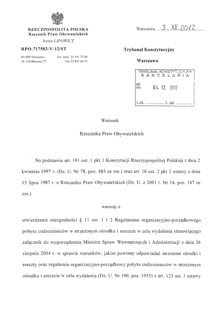 151ipca 1987 r. o Rzeczniku Praw Obywatelskich (Dz. U. z 2001 r. Nr 14, poz. 147 ze