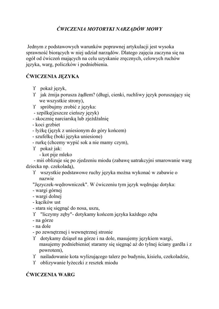 ĆWICZENIA MOTORYKI NARZĄDÓW MOWY