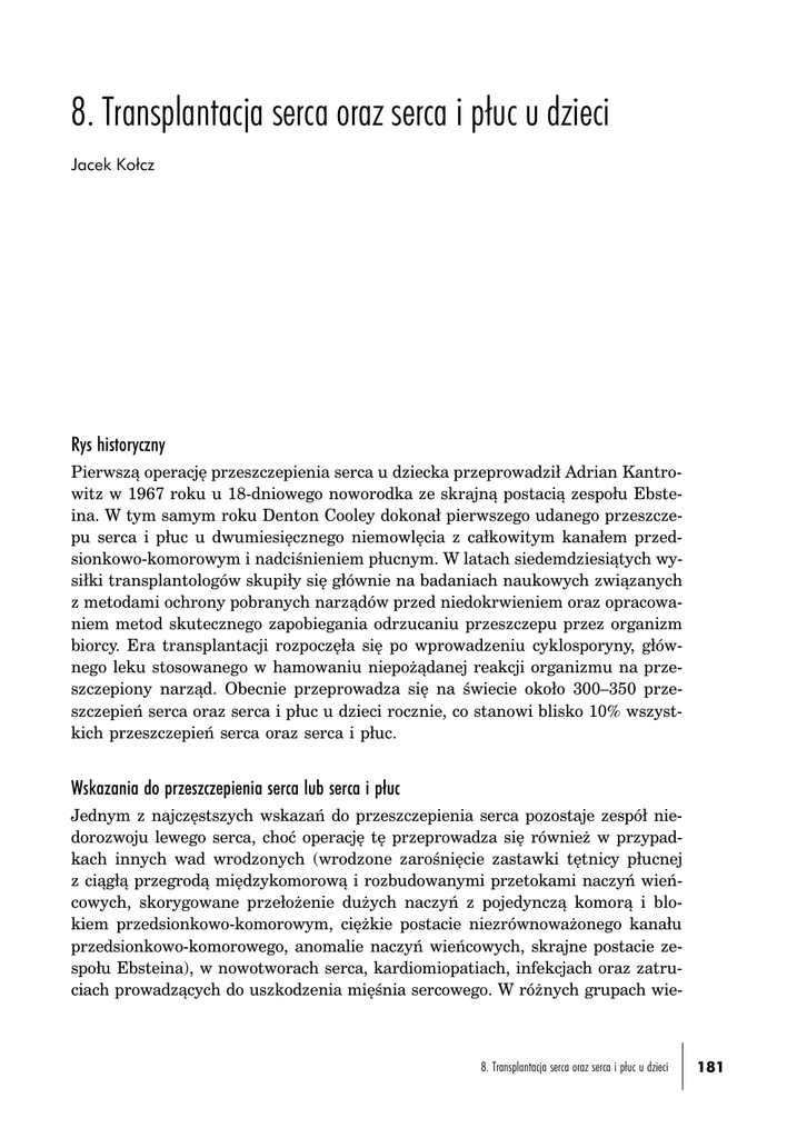 8. Transplantacja serca oraz serca i płuc u dzieci