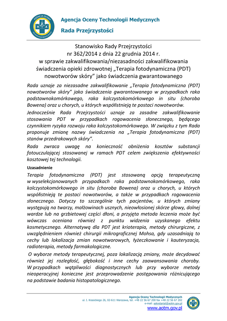 362/2014 - Agencja Oceny Technologii Medycznych i Taryfikacji