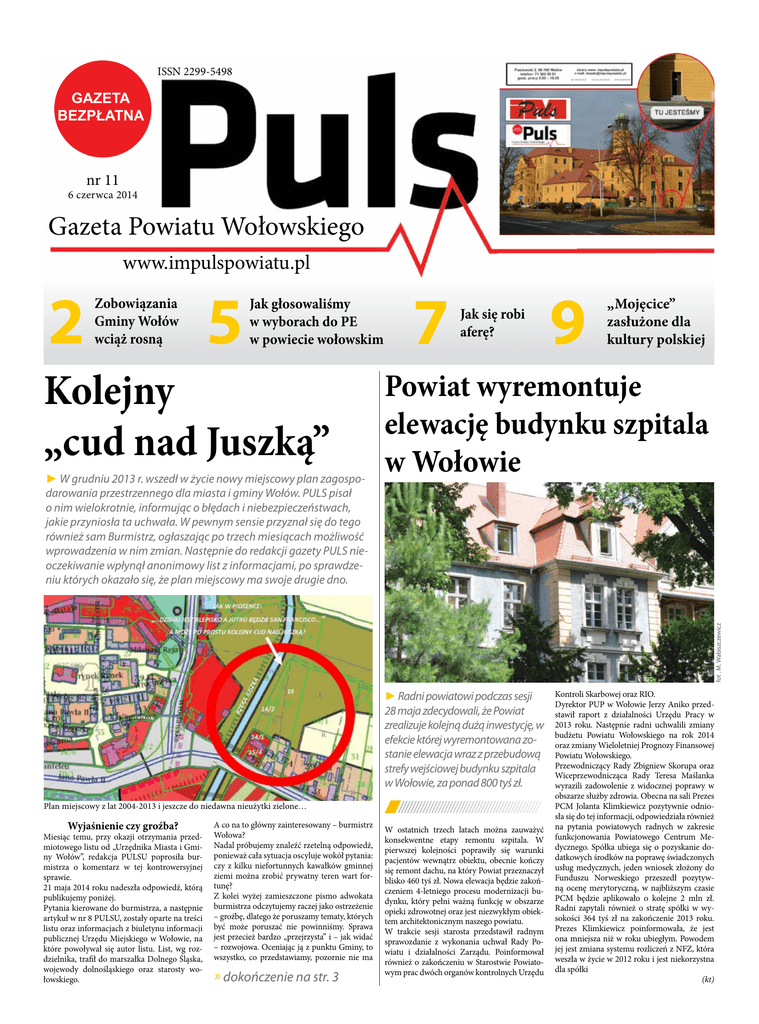ISSN 2299-5498 GAZETA BEZPŁATNA nr 11 6 czerwca 2014 Gazeta Powiatu Wołowskiego www.impulspowiatu.pl 2 Zobowiązania Gminy Wołów wciąż rosną 5 Jak głosowaliśmy w wyborach do PE w powiecie wołowskim Kolejny „cud nad Juszką” 9 „Mojęcice” zasłużone dla kultury polskiej Powiat wyremontuje elewację budynku szpitala w Wołowie fot . M. Wabiszczewicz ► W grudniu 2013 r. wszedł w życie nowy miejscowy plan zagospodarowania przestrzennego dla miasta i gminy Wołów. PULS pisał o nim wielokrotnie, informując o błędach i niebezpieczeństwach, jakie przyniosła ta uchwała. W pewnym sensie przyznał się do tego również sam Burmistrz, ogłaszając po trzech miesiącach możliwość wprowadzenia w nim zmian. Następnie do redakcji gazety PULS nieoczekiwanie wpłynął anonimowy list z informacjami, po sprawdzeniu których okazało się, że plan miejscowy ma swoje drugie dno. 7 Jak się robi aferę? ► Radni powiatowi podczas sesji 28 maja zdecydowali, że Powiat zrealizuje kolejną dużą inwestycję, w efekcie której wyremontowana zostanie elewacja wraz z przebudową strefy wejściowej budynku szpitala w Wołowie, za ponad 800 tyś zł. Plan miejscowy z lat 2004-2013 i jeszcze do niedawna nieużytki zielone… Wyjaśnienie czy groźba? Miesiąc temu, przy okazji otrzymania przedmiotowego listu od „Urzędnika Miasta i Gminy Wołów”, redakcja PULSU poprosiła burmistrza o komentarz w tej kontrowersyjnej sprawie. 21 maja 2014 roku nadeszła odpowiedź, którą publikujemy poniżej. Pytania kierowane do burmistrza, a następnie artykuł w nr 8 PULSU, zostały oparte na treści listu oraz informacjach z biuletynu informacji publicznej Urzędu Miejskiego w Wołowie, na które powoływał się autor listu. List, wg rozdzielnika, trafił do marszałka Dolnego Śląska, wojewody dolnośląskiego oraz starosty wołowskiego. A co na to główny zainteresowany – burmistrz Wołowa? Nadal próbujemy znaleźć rzetelną odpowiedź, ponieważ cała sytuacja oscyluje wokół pytania: czy z kilku niefortunnych kawałków gminnej ziemi można zrobić prywatny teren wart fortunę? Z kolei wyżej zamieszczone pismo adwokata burmistrza odczytujemy raczej jako ostrzeżenie – groźbę, dlatego że poruszamy tematy, których być może poruszać nie powinniśmy. Sprawa jest przecież bardzo „przejrzysta” i – jak widać – rozwojowa. Oceniając ją z punktu Gminy, to wszystko, co przedstawiamy, pozornie nie ma » dokończenie na str. 3 W ostatnich trzech latach można zauważyć konsekwentne etapy remontu szpitala. W pierwszej kolejności poprawiły się warunki pacjentów wewnątrz obiektu, obecnie kończy się remont dachu, na który Powiat przeznaczył blisko 460 tyś zł. Nowa elewacja będzie zakończeniem 4-letniego procesu modernizacji budynku, który pełni ważną funkcję w obszarze opieki zdrowotnej oraz jest niezwykłym obiektem architektonicznym naszego powiatu. W trakcie sesji starosta przedstawił radnym sprawozdanie z wykonania uchwał Rady Powiatu i działalności Zarządu. Poinformował również o zakończeniu w Starostwie Powiatowym prac dwóch organów kontrolnych Urzędu Kontroli Skarbowej oraz RIO. Dyrektor PUP w Wołowie Jerzy Aniko przedstawił raport z działalności Urzędu Pracy w 2013 roku. Następnie radni uchwalili zmiany budżetu Powiatu Wołowskiego na rok 2014 oraz zmiany Wieloletniej Prognozy Finansowej Powiatu Wołowskiego. Przewodniczący Rady Zbigniew Skorupa oraz Wiceprzewodnicząca Rady Teresa Maślanka wyrazili zadowolenie z widocznej poprawy w obszarze służby zdrowia. Obecna na sali Prezes PCM Jolanta Klimkiewicz pozytywnie odniosła się do tej informacji, odpowiedziała również na pytania powiatowych radnych w zakresie funkcjonowania Powiatowego Centrum Medycznego. Spółka ubiega się o pozyskanie dodatkowych środków na poprawę świadczonych usług medycznych, jeden wniosek złożony do Funduszu Norweskiego przeszedł pozytywną ocenę merytoryczną, w najbliższym czasie PCM będzie aplikowało o kolejne 2 mln zł. Radni zapytali również o stratę spółki w wysokości 364 tyś zł na zakończenie 2013 roku. Prezes Klimkiewicz poinformowała, że jest ona mniejsza niż w roku ubiegłym. Powodem jej jest zmiana systemu rozliczeń z NFZ, która weszła w życie w 2012 roku i jest niekorzystna dla spółki (kt) nr 11, 6 czerwca 2014 2 Puls Gazeta Powiatu Wołowskiego Informacje powiatowe Brzeg Dolny Dwunastu „za”, trzech „przeciw” ► Burmistrz Brzegu Dolnego otrzymał absolutorium z tytułu wykonania budżetu za 2013 rok. 12 radnych było „za”, trzech zagłosowało „przeciw”. Wcześniej radni przyjęli uchwałę w sprawie zatwierdzenia sprawozdania finansowego za ubiegły rok. Pozytywną opinię o przedłożonym przez burmistrza sprawozdaniu wydała Regionalna Izba Obrachunkowa. ► W trakcie ostatniej sesji Rady Miejskiej Gminy Wołów radni zdecydowali o wypuszczeniu ponad 7 mln zł obligacji komunalnych, które mają na celu – zdaniem burmistrza Dariusza Chmury – sfinansować realizowane inwestycje. W trakcie sesji wiceburmistrz Jacek Włosek przedstawił sposób funkcjonowania nowego systemu gospodarowania odpadami komunalnymi. Koszt funkcjonowania systemu w II półroczu 2013 r. wyniósł 1 861 375 zł, ponadto uzyskano poziom recyklingu na poziomie 25%, przy czym Ministerstwo Środowiska w tym czasie wymagało zaledwie 12%. Wiceburmistrz wyjaśniał, że na podstawie dostępnych wskaźników nowy system w gminie odniósł pozytywny skutek. W trakcie sesji radni przyjęli zmiany w budżecie Gminy Wołów oraz podwyższyli kapitał Przedsiębiorstwa Wodno-Kanalizacyjnego w celu umożliwienia spółce realizacji budowy kanalizacji w Garwole. Radni gminni podjęli również decyzję w sprawie Wołów nr 11, 6 czerwca 2014 Zobowiązania Gminy Wołów wciąż rosną podwyższenia kapitału zakładowego Powiatowego Centrum Medycznego o łącznej wartości 108 500 zł. Jest to wynikiem uchwały Zgromadzen
