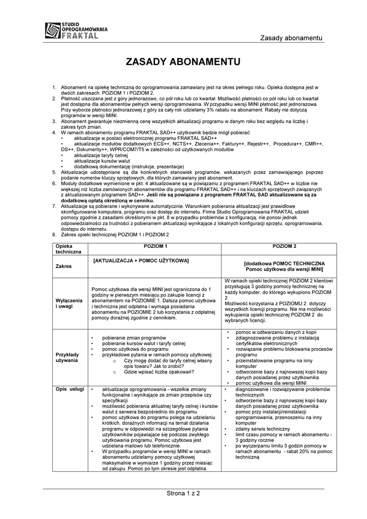 zasady abonamentu - Studio Oprogramowania FRAKTAL