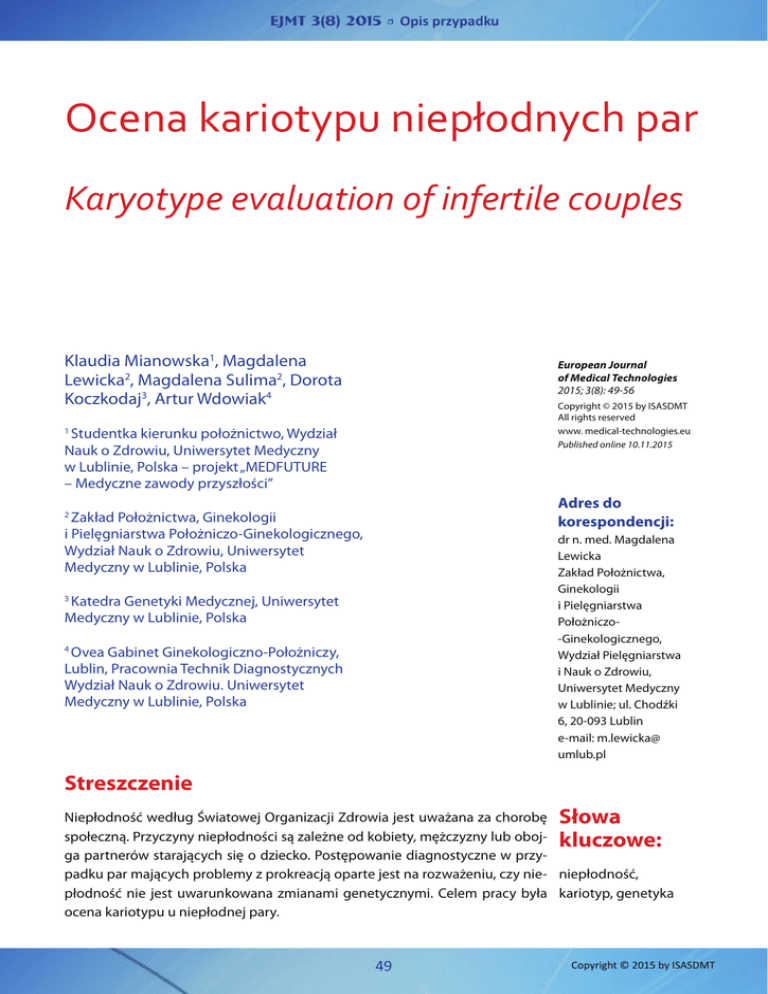 Ocena kariotypu niepłodnych par - European Journal of Medical