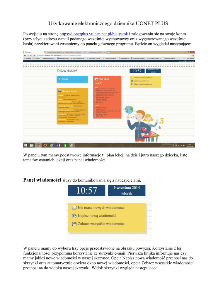 Użytkowanie elektronicznego dziennika UONET PLUS.