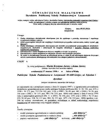 OSWIADCZENIE MAJJ\TKOWE Dyrektora Publiclnej Szkoly Podstawowej w LesZIlowoli w6jta, ~pcy wojtl, sekn:tara Gminy~ Ik.arbnika Gminy.kienJ'wnika ietfnostkj orpni7.acviaej Gmip;y,