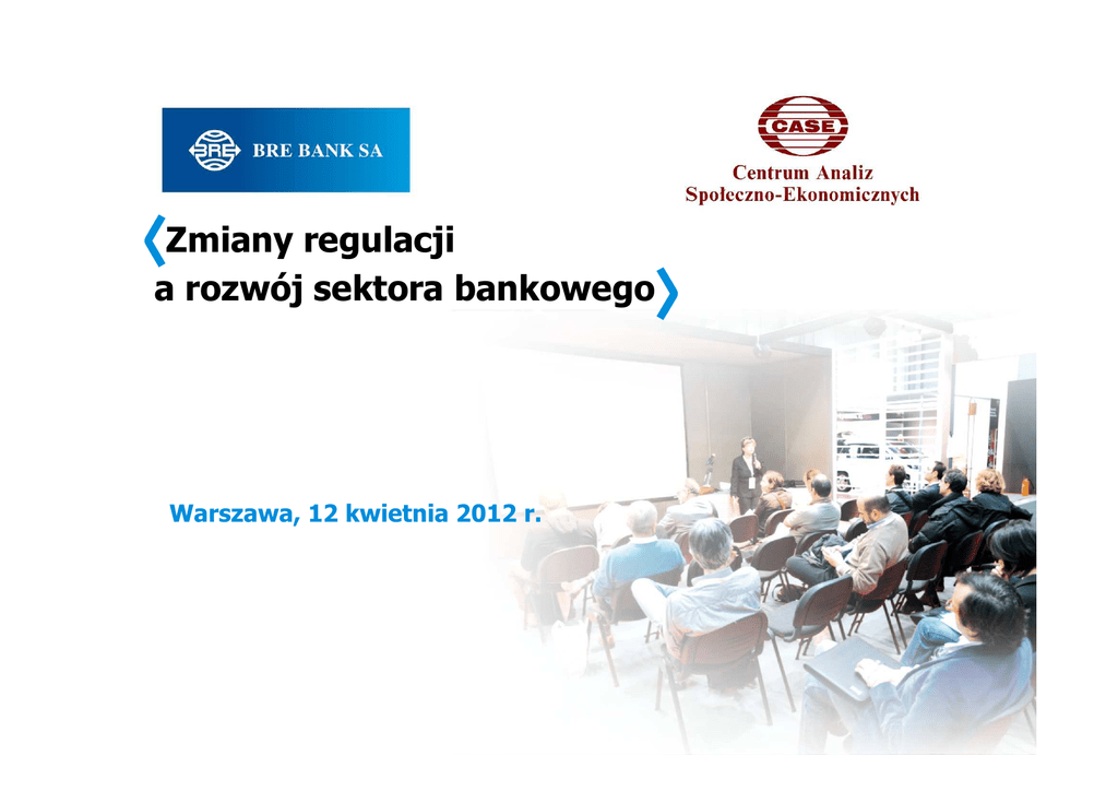 Zmiany regulacji a rozwój sektora bankowego Warszawa, 12 kwietnia 2012 r. MoŜliwe implikacje wejścia w Ŝycie pakietu regulacyjnego Bazylea III dla polskich banków komercyjnych Maciej Stańczuk Prezes Zarządu Polskiego Banku Przedsiębiorczości SA Wpływ CRD IV na polski sektor bankowy Ludwig Erhard: „Człowiekowi wprawdzie udało się rozszczepić atom, ale nigdy nie uda się zakwestionować naturalnego prawa, które nam zakazuje więcej konsumować niŜ sami wyprodukujemy” Taka sytuacja jednak wystąpiła, czego wyrazem jest globalna nierównowaga na rachunku obrotów bieŜących oraz nadmierne zadłuŜenie sektorów prywatnego i publicznego; „New economy” boom w 2 połowie lat 90. (wiara, Ŝe trwały wzrost produktywności moŜe być zagwarantowany wysokimi stopami wzrostu); Wpływ CRD IV na polski sektor bankowy Po pęknięciu wprowadzaniem bańki spekulacyjnej dodatkowej zdecydowano płynności do załagodzić systemu dla sytuację złagodzenia koniecznego dopasowania realnej gospodarki. Problemy: od 2003r. zakłócenia na rynku obligacji, akcji i nieruchomości w USA i Europie przy stale wzrastającym zadłuŜeniu prywatnym, a następnie publicznym (z takim toksycznym koktajlem mamy do czynienia do dzisiaj); Sektor finansowy jest stanowczo zbyt duŜy, jeśli załoŜyć, Ŝe jego podstawową funkcją jest finansowanie sfery realnej gospodarki: zbyt rozbudowany sektor finansowy negatywnie wpływa na wzrost i zatrudnienie; Wpływ CRD IV na polski sektor bankowy Oderwanie banków od realnych potrzeb gospodarki obserwujemy w świecie zachodnim od początku lat 80-tych (deindustrializacja, zbyt duŜy udział sektora finansowego w GDP, dochodzący do 10%); Po upadku Lehman Brothers próbowano powaŜnie zredefiniować nowe regulacje sektora finansowego (spotkania G20 w Waszyngtonie w 2008 i Pittsburghu w 2009), lekcja jednak nie została do końca odrobiona; Wpływ CRD IV na polski sektor bankowy Gospodarka światowa oraz system finansów światowych znajdują się pod wpływem narkotyków (brak konsolidacji fiskalnej z jednej strony, pompowanie płynności do systemu finansowego przez banki centralne z drugiej); Nowe regulacje (Bazylea III) adresują problem bezpieczeństwa sektora bankowego, ale pomijają instytucje parabankowe. Wpływ CRD IV na polski sektor bankowy LCR i NSFR • Regulacje w obecnej formie preferują kredytowanie klientów indywidualnych i długu państwowego na niekorzyść przedsiębiorstw! • Regulacje Bazylei III penalizują depozyty korporacyjne, JST i banków, co powoduje, Ŝe banki refinansujące swoje aktywa w oparciu o depozyty niedetaliczne, albo pozyskujące płynność od swoich właścicieli muszą utrzymywać gigantyczną nadpłynność (kilkukrotnie przewyŜszającą ich minimalne potrzeby płynnościowe!). Wpływ CRD IV na polski sektor bankowy Nowe regulacje płynnościowe mogą znacznie utrudnić dostępność kredytów o zapadalności dłuŜszej niŜ 1 rok (róŜnice strukturalne między rynkiem polskim, a UE). Kredyty dla przedsiębiorstw obarczone są najwyŜszą wagą ryzyka, co moŜe wykreować bańki spekulacyjne w segmencie kredytów hipotecznych, konsumpcyjnych i finansowania długu państw. NSFR moŜe się okazać szczególnie dotkliwy dla systemów bankowych, gdzie brakuje długoterminowych instrumentów finansowania (listy zastawne, sekurytyzacja), zwłaszcza w sytuacji wzrostu portfeli długoterminowych aktywów (hipoteki). wartości Wpływ CRD IV na polski sektor bankowy PodaŜ instrumentów finansowania długoterminowego (oraz działania sprzyjające wykreowaniu tego rodzaju produktów) musi wzrosnąć (bankowe papiery dłuŜne zabezpieczone i niezabezpieczone. By sprostać wymogom płynności długoterminowej konieczne będą zmiany struktury bilansu banków oraz dostosowanie modeli biznesowych (wzrost kosztów finansowania, podwyŜszenie kosztów kredytu, wycofanie się banków z niektórych nieopłacalnych segmentów biznesowych) - przedsiębiorstwa będą mniej zarabiać na lokatach, za to więcej płacić za trudniej dostępne kredyty. Wpływ CRD IV na polski sektor bankowy Brak uzasadnienia dla róŜnego traktowania stabilności depozytów korporacyjnych i depozytów detalicznych. Niespójność nowych regulacji mających zwiększać bezpieczeństwo banków i wymuszających podwyŜszenie kapitałów banków w wielce niekorzystnych warunkach rynkowych. Dziękuję za uwagę