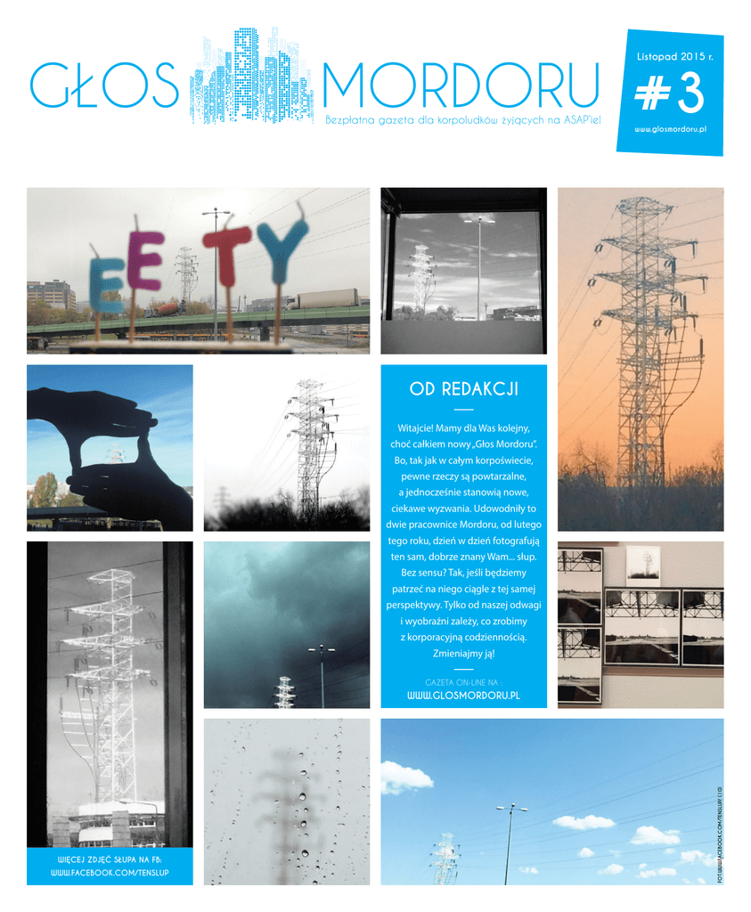 Głos Listopad 2015 r. Mordoru #3 Bezpłatna gazeta dla korpoludków żyjących na ASAP’ie! www.glosmordoru.pl OD REDAKCJI Witajcie! Mamy dla Was kolejny, choć całkiem nowy „Głos Mordoru”. Bo, tak jak w całym korpoświecie, pewne rzeczy są powtarzalne, a jednocześnie stanowią nowe, ciekawe wyzwania. Udowodniły to dwie pracownice Mordoru, od lutego tego roku, dzień w dzień fotografują ten sam, dobrze znany Wam... słup. Bez sensu? Tak, jeśli będziemy patrzeć na niego ciągle z tej samej perspektywy. Tylko od naszej odwagi i wyobraźni zależy, co zrobimy z korporacyjną codziennością. Zmieniajmy ją! Gazeta on-line na : Więcej zdjęć słupa na FB: www.facebook.com/tenslup FOT.www.facebook.com/tenslup/ (10) www.glosmordoru.pl Głos Mordoru 02 www.glosmordoru.pl Zestresowany Mordor „jedzie” na Modafinilu? Modafinil to u nas wciąż nowinka. Miał to być antydepresant, niespodziewanie okazało się, że pozwala kontrolować sen. Modafinil to u nas wciąż nowinka. Miał to być antydepresant, niespodziewanie okazało się, że pozwala kontrolować sen. Nieoficjalnie wiemy, że o jego „pożądanym” działaniu przekonuje się wielu pracujących w okolicach Domaniewskiej. W mokotowskich aptekach pytają o niego ci, których kusi łatwy sposób na pokonanie chronicznego zmęczenia. Niezła alternatywa dla amfetaminy czy kokainy. Lek rozpala wyobraźnię ambitnych, a takich w korporacjach nie brakuje. Chodzi o pokaz wytrzymałości i siły, gdy w firmie zdecydowanie nie zaleca się wychodzić przed szefem. – W Polsce Modafinil dopiero zdobywa popularność – mówi Adam Nyk, terapeuta uzależnień z Monaru, pytany, czy pojawiają się już pierwsi pacjenci z objawami jego nadużycia. – Ci, którzy dziś sięgają po ten środek, trafią do poradni dopiero za kilka miesięcy lub nawet lat. Jak mówi „Głosowi Mordoru”: – To jedynie kwestia czasu. Tak jest z każdym tego typu środkiem i jeszcze się nie zdarzyło, żeby było inaczej. Oczywiście specyfika niektórych zawodów wiąże się z adrenaliną, ale specjaliści podkreślają, że źródłami stresu są zwykle czynniki związane z odpowiednią organizacją pracy i jasnym wyznaczeniem celów. O takie często w Mordorze bardzo trudno. W świecie, w którym wszystko przyspiesza, a tempo pracy rośnie, Modafinil jawi się jako idealne rozwiązanie. Bywanie w aptece jest trendy? Modafinil początkowo zyskał sławę leku pozbawionego skutków ubocznych, stosującym go groził tylko ból głowy czy biegunka. Ponieważ w dziewięciu na dziesięć przypadków recepty są przypisywane ludziom zdrowym, ale bardzo zapracowanym, skutki uboczne mogą okazać się zaskakujące. Na przykład wysokie ciśnienie krwi, kołatanie serca, a nawet tachykardia (ponad 100 uderzeń serca na minutę). Czy to odstraszy sięgających po niego? – Odważnych nigdy nie brakuje. Jak z alkoholem. Bogatsi sięgają regularnie po whisky, a tych na dole hierarchii stać na codzienne piwo – mówi „Głosowi Mordoru” Piotr, menedżer średniego szczebla. Dla niego ćpanie w Mordorze jest zjawiskiem normalnym, tak jak korki w okolicach Galmoku. Nie dziwi go, że Modafinil wchodzi na polskie salony. – Wiele zależy od trendów, widocznie dziś modne bywa bieganie do pani magister w aptece – stwierdza. Dzięki takiemu lekowi możesz oszukać szefa, udowodnić, że jesteś niezwykle wydajnym pracownikiem. Po Modafinil sięgną pewnie ci, którzy robią kawę przełożonym i wykonują podłe prace, takie jak prezentacje w PowerPoincie czy kserowanie. Ci z dołu hierarchii korpo mogą skończyć jak Moritz Erhardt, stażysta w banku inwestycyjnym w Londynie, którego w 2013 r. znaleziono martwego. Ponoć nadużywał Modafinilu. Testowany na studentach Cambridge Modafinil został opracowany we Francji przez LAFON Laboratories pod koniec lat 70. W 1986 r. związek sklasyfikowany jako benzhydrylo sulfinyl został zastosowany po raz pierwszy w leczeniu narkolepsji. Co ciekawe, narkolepsja występuje u ok. 0,03–0,16 procent populacji (to przewlekła choroby, mija 10 do 15 lat, zanim zostaje ustalona diagnoza), co oznacza, że w Polsce może cierpieć na nią góra kilkanaście tysięcy osób. Lekarze przepisują go chorym, którzy cierpią na napady senności. Chorzy na narkolepsję potrafią zasnąć nagle, nawet wygłaszając przemówienie czy schodząc po schodach. Z badań wynika, że w Europie tylko Grecy i Turcy czują się bardziej zestresowani pracą od Polaków. W 2003 r. testowano Modafinil na studentach Uniwersytetu Cambridge. Stwierdzono wtedy jego wyraźny wpływ na zdolności poznawcze studentów. Badania potwierdzały, że stosowanie leku jest „dość bezpieczne”. Leki takie jak Modafinil spopularyzował hollywoodzki „Jestem Bogiem”. W filmie z 2011 r. Eddie Morr, grany przez Bradleya Coopera, odkrywa „inteligentny” lek NZT-48, który podnosi jego możliwości umysłowe. Klepiący biedę pisarz dzięki cudownemu lekowi staje się rekinem finansowym i multimilionerem. Nikt jeszcze nie jest w stanie przewidzieć długofalowych skutków zażywania Modafinilu, który zaburza czas snu. Po dwóch dobach bez wypoczynku u zdrowej osoby mózg funkcjonuje na granicy jawy i snu. Tymczasem przepracowani żołnierze korpo biorą go jako jeden z dwóch, przeciwnie działających specyfików. Piotr, który spędził w Mordorze 10 lat, tłumaczy nam, że wiele osób zażywa na przykład jednocześnie kodeinę i ketaminę. – Jedna substancja jest pobudzaczem – jak Modafinil, a druga usypiaczem – tłumaczy. Po co to robią? Aby w miarę „normalnie” funkcjonować, bo po całym dniu na podwyższonych obrotach trzeba wreszcie się zrelaksować. Po ile środek na niespanie? Nie wszyscy chętni szukają Modafinilu w aptece, bo potrzebna jest recepta. Są zamienniki, np. Vigil, zawierający te same składniki, ale jest dostępny tylko w dużych opakowaniach i kosztuje kilkaset złotych. Po Modafinil od kilku lat się
