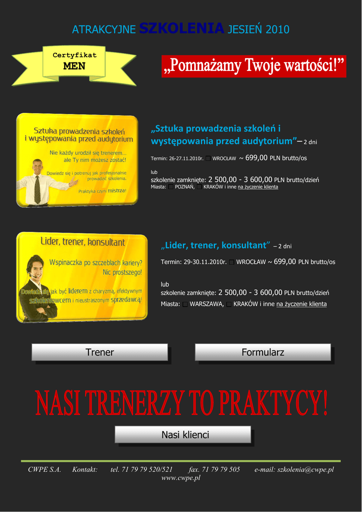 ATRAKCYJNE SZKOLENIA JESIEŃ 2010