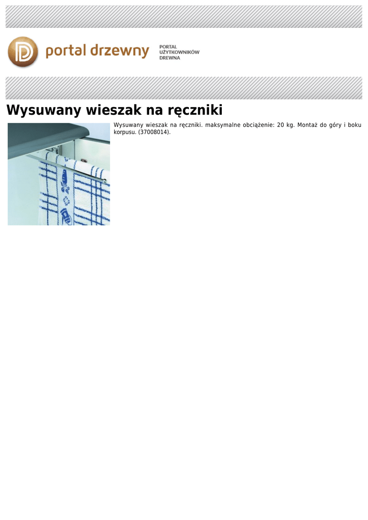 Wysuwany wieszak na ręczniki Wysuwany wieszak na ręczniki. maksymalne obciążenie: 20 kg. Montaż do góry i boku korpusu. (37008014).