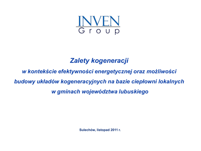 Zalety kogeneracji w kontekście efektywności energetycznej oraz możliwości budowy układów kogeneracyjnych na bazie ciepłowni lokalnych w gminach województwa lubuskiego Sulechów, listopad 2011 r. W prezentacji oprócz materiałów i opracowań własnych Inven Group wykorzystano informacje zawarte w opracowaniach: • Studium Rozwoju Systemów Energetycznych w Województwie Lubuskim do roku 2025 Energoekspert, Katowice • Koszty wytwarzania energii elektrycznej i ciepła - prof. J. Lewandowski, ITC Autorom źródeł dziękujemy IDEA KOGENERACJI Strata Paliwo 83 55 53 Wytwarzanie rozdzielone Elektrownia 42% Ciepłownia 90% Strata Energia elektryczna 35 50 Ciepło 15 Kogeneracja Paliwo 35% Elektrociepłownia 100 50% Całość 100 Całość 138 Sprawność ogólna: η elektrownia kondensacyjna = 42% η ciepłownia = 90% η elektrociepłownia = 85% 3 CIEPŁOWNICTWO, SKALA ZAGADNIENIA Zbiorcze (scentralizowane) systemy ciepłownicze zapewniają ciepło znacznej części polskiego społeczeństwa. Są ważnym elementem systemu bezpieczeństwa energetycznego gmin. Miejskie Systemy Ciepłownicze wg dostaw ciepła do miejskich systemów ciepłowniczych Elektrociepłownie zawodowe 45% Moc: 59 800 MWt Produkcja: Ciepłownie komunalne Wielkość rynku docelowego: 32% • Około 100 PEC-ów gminnych (niesprywatyzowanych) o mocy 50-150 MWt Elektrociepłownie systemowe 13% • Wartość rynku - około 10-20 mld zł 398 000 TJ Elektrociepłownie przemysłowe Źródło: URE, IGCP, Analizy własne 10% 0% 20% 40% 60% 4 WIĘKSZE WYSPOWE SYSTEMY CIEPŁOWNICZE W WOJEWÓDZTWIE LUBUSKIM Świebodzin Lubsko Żary Kożuchów Nowa Sól Szprotawa Żagań Słubice Sulęcin Gubin Sulechów Międzyrzecz Skwierzyna Strzelce Krajeńskie TEZA: Z energii paliw wykorzystywanych dziś w systemach centralnego ogrzewania powinno się produkować nie tylko ciepło ale również prąd. (Kogeneracja) Pojawiają się szczególnie korzystne ku temu okoliczności. 5 POKRYCIE ZAPOTRZEBOWANIA NA CIEPŁO W WOJEWÓDZTWIE LUBUSKIM 21% Gaz sieciowy 4% Centralny system ciepłowniczy 31% Wyspowe systemy ciepłownicze 8% Energia elektryczna Kotłownie lokalne węglowe 21% 10% Inne paliwa Odnawialne źrodła energii Indywidualne ogrzewanie węglowe 1% 4% KOTŁOWNIE przedział mocy Węgiel Gaz sieciowy Biomasa, biogaz Inne RAZEM Moc kotłowni łącznie [MW] 0,1 - 5 MW 346 480 27 166 1019 551 5 - 20 MW 15 6 2 2 25 246 > 20 MW 7 1 1 0 9 456 ilość kotłowni 368 487 30 168 1053 1253 łączna moc zainstalowana [MW] 710 289 151 102 1253 6 LUBUSKIE CIEPŁOWNICTWO Zapotrzebowanie na moc cieplną 4 300 MW Produkcja ciepła 27 000 000 GJ Teoretyczny potencjał produkcji energii elektrycznej w skojarzeniu 3 280 000 MWh 7 ZAPOTRZEBOWANIE NA MOC I ZUŻYCIE ENERGII ELEKTRYCZNEJ Ponad 30% energii elektrycznej zużywanej w województwie lubuskim dostarczane jest spoza jego obszaru. Produkcja w źródłach lokalnych Deficyt / Źródła zewnętrzne Dostawa spoza obszaru województwa lubuskiego Zapotrzebowanie/ zużycie w województwie lubuskim Moc osiągalna [MW] Produkcja [MWh] 446,5 2 195 235 253,5 - 1 001 627 700 3 196 862 Konieczność importu energii elektrycznej oznacza większe koszty (przesyłu) i większe ryzyko zakłócenia dostaw Lubuskie potrzebuje nowych, lokalnych źródeł energii elektrycznej, najlepiej aby były to źródła rozproszone, skojarzone i odnawialne 8 SKUTKI ZAOSTRZONYCH REGULACJI ŚRODOWISKOWYCH Nowe wymagania unijne, głównie wynikające z dyrektyw ETS i IED, poza zmniejszeniem zanieczyszczenia, spowodują wzrost cen ciepła centralnego. Dotyczy to zwłaszcza systemów bazujących na technologii węglowych kotłów wodnych. Dyrektywa ETS w sprawie emisji CO2 zł/GJ 120 • Uprawnienia darmowe zostaną przydzielone metodą benchmarkową, opartą o standard 10% najlepszych instalacji w Europie. • Liczba darmowych uprawnień będzie się corocznie zmniejszać, z 80% w roku 2013 do 30% w roku 2020 i 0% w roku 2027. • Możliwe są derogacje, ale to jedynie odsuwa a nie rozwiązuje problem Dyrektywa IED w sprawie emisji Cena ciepła dla mieszkańców bez zmiany technologii* Efekt dostosowania do dyrektywy IED (2023) 100 80 Efekt nowego systemu rozliczania CO2 (2013) 60 • Wzrost rachunków za ciepło bez uwzględnienia inflacji wyniesie 35-50% przemysłowych • Redukcja SO2 40 • Redukcja NOx • Redukcja Pyłu • Nie jest jeszcze znany ostateczny termin wejścia w życie obowiązku redukcji SO2 i NOx – 2016 lub 2023 rok. 20 *Analiza wykonana dla systemu ciepłowniczego 70-tysięcznego miasta 0 • Nominalny wzrost kosztów wytwarzania ciepła wyniesie 50-75% 2010 2011 2012 2013 2014 2015 2016 2017 2018 2019 2020 2021 2022 2023 2024 2025 2026 2027 9 ZAOPATRZENIE W GAZ WOJEWÓDZTWA LUBUSKIEGO • Ziemia Lubuska jest bogata we własne zasoby gazu ziemnego, ale poza głównymi miastami i kilkoma gminami jest słabo zgazyfikiwana. • Zużycie gazu (przemysł i odbiorcy komunalni ) ok. 1 mld. m3/a 10 STRATEGIE MODERNIZACJI POLSKICH CIEPŁOWNI Wymierne korzyści można osiągnąć zastępując węgiel gazem lub biomasą i wprowadzając produkcję energii elektrycznej i ciepła w skojarzeniu. Zalety Strategia A Budowa układów kogeneracyjnych na węglu Strategia B Budowa układów kogeneracyjnych na gazie Strategia C Budowa układów kondensacyjnokogeneracyjnych na biomasie Strategia D Układy hybrydowe – łączące powyższe strategie • • Dobrze rozpoznana technologia Dostępność paliwa Wady • • • • • Dobrze rozpoznana technologia Dostępność paliwa Redukcja emisji • • Atrakcyjna stopa zwrotu na niektórych paliwach (np. słoma) W zasadzie nie wrażliwy na zmienny poziom odbioru ciepła Szansa na poprawę ekonomii wraz z zaostrzaniem wymagań ochrony środowiska • Możliwość zoptymalizowania elektrociepłowni pod względem ekonomii i ryzyk do specyficznych cech indywidualnych rynków ciepła. Dywersyfikacja ryzyka paliwowego i maksymalne wykorzystanie konkretnych możliwości oferowanych prze