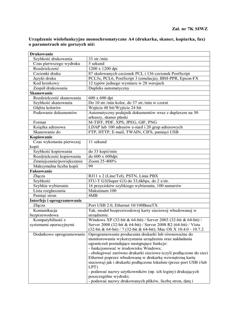 Zał. nr 7K SIWZ Urządzenie wielofunkcyjne