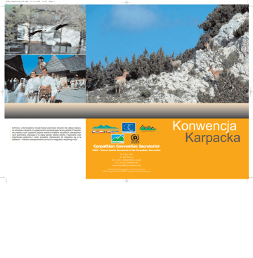 10.01.2008 10:28 Page 1 © Juho Rahkonen © PROMBERGER © Saladyga ONU_Carpathian_POL.qxd Ochrona i zrównoważony rozwój Karpat przyniesie korzyści dla całego regionu, od ośrodków miejskich po społeczności zamieszkujące tereny górskie. Powodzenie projektu może zapewnić jedynie wspólne działanie wszystkich zaangażowanych podmiotów, włączając w to rządy państw, władze lokalne i regionalne, oraz organizacje społeczne i osoby prywatne. Zapraszamy do włączenia się w te działania – Państwa zaangażowanie pomoże w osiągnięciu wspólnego celu! Mountain Partnership Carpathian Convention Secretariat UNEP - Vienna Interim Secretariat of the Carpathian Convention P.O. Box 500 A-1400 Vienna Tel : (+43-1) 26060-5018 / 4545 Fax : (+43-1) 26060-6730 www.carpathianconvention.org Published by the Carpathian Convention Secretariat with the support of the UNEP/DEC Information Unit for Conventions Konwencja Karpacka 10:31 Page 2 Ochrona ludności lokalnej i przyrody Bogactwo fauny, flory i kultury Karpat sprawia, że jest to region słynący z przepięknych, zapierających dech w piersi krajobrazów. Region ten, stanowiący jeden z największych obszarów naturalnych lasów, jest schronieniem dla brunatnych niedźwiedzi, wilków, żubrów, rysi i orłów. Występuje tu także ponad 200 endemicznych gatunków roślin. Ponadto znajdują się tu jedne z najczystrzych strumieni oraz zasobów wody pitnej. zgodzie z zasadami ochrony środowiska, a liczne funkcje lasów muszą zostać poznane i objęte ochroną. Konwencja wymienia uznane globalnie zasady dotyczące rozwoju Karpat, pozwalające pracować na szczeblu regionalnym. Jej celem jest wspieranie gospodarczego i społecznego rozwoju Karpat w sposób zapobiegający zniszczeniu środowiska i zubożeniu zasobów naturalnych. Konwencja promuje stosowanie "najlepszej praktyki" środowiskowej w celu ochrony ekologicznych podstaw zdrowej gospodarki. Rozwój zrównoważonego transportu i infrastruktury Obszary charakteryzujące się dużą różnorodnością biologiczną, które stanowią trasy migracji lub posiadają szczególne walory turystyczne, nie mogą być niszczone przez system transportu lub zabudowę. Promowanie bezpiecznych dla środowiska technologii przemysłowych i produkcji energii Niekorzystny wpływ rozwoju można zredukować dzięki stosowaniu technologii czystszej produkcji, szybkiemu usuwaniu skutków ewentualnych awarii przemysłowych oraz sprawowaniu ściślejszego nadzoru nad górnictwem. Działanie Zgodnie ze wspomnianymi wcześniej zasadami, państwa regionu Karpat współpracują ze sobą w ramach Konwencji, aby zrealizować sformułowane następująco cele: Na szczęście jest tu wystarczająco dużo miejsca dla dzikiej przyrody i nowoczesnej gospodarki, oczywiście pod warunkiem, że zostaną podjęte działania zmierzające do ochrony szczególnego dziedzictwa przyrodniczego tego regionu. Mając na celu ochronę przyrody Karpat, pomagając jednocześnie ludności w poprawie poziomu życia, władze regionalne Karpat przyjęły wspólnie w roku 2003 Ramową Konwencję o Ochronie i Zrównoważonym Rozwoju Karpat (nazywaną Konwencją Karpacką). Ochrona różnorodności przyrody i krajobrazu, oraz użytkowanie ich w sposób zrównoważony Planowana Karpacka Sieć Obszarów Chronionych pozwoli na odtworzenie zdegradowanych siedlisk i ponowne połączenie obszarów podzielonych, aby umożliwić przemieszczanie się i migrację gatunków. Konwencja Karpacka porusza kwestie wielu zagrożeń dotyczących ludności i zasobów naturalnych regionu. Należą do nich: bezrobocie, ubóstwo, bezplanowe budownictwo, nadmierna eksploatacja zasobów naturalnych, zanieczyszczenie środowiska, wylesianie i zbyt intensywna gospodarka łowiecka. Władze Republiki Czeskiej, Węgrzech, Polski, Rumunii, Serbii, Słowacji i Ukrainy pracują wspólnie nad rozwiązaniem tych problemów. Kraje te współpracują w Zapewnienie zintegrowanego zarządzania zasobami wodnymi i dorzeczami rzek Wszystkie aspekty gospodarki wodnej, od problemów zanieczyszczenia i oczyszczania, po zapobieganie powodziom i ochronę terenów podmokłych, są wzajemnie powiązane i wymagają zintegrowanego podejścia. Promowanie rozwoju zrównoważonej gospodarki rolnej i leśnej Polityki dotyczące gospodarki rolnej i gospodarowania gruntami muszą być w Zachowanie dziedzictwa kulturowego i wiedzy ludowej Szczególne wysiłki są często niezbędne w celu wprowadzania na rynek miejscowych produktów i wyrobów rękodzielniczych, miejscowych ras zwierząt gospodarskich oraz zrównoważonego użytkowania dziko rosnących roślin. Ocena i monitorowanie stanu środowiska Najważniejsze działania obejmują badania naukowe, ocenę ryzyka oraz rozpoznanie naturalnych, a także powodowanych przez człowieka, zagrożeń środowiska naturalnego z zastosowaniem systemów wczesnego ostrzegania. Podnoszenie świadomości i edukacja społeczeństwa Ochrona Karpat wymaga aktywnego udziału społeczeństwa w procesie podejmowania decyzji i lepszego dostępu do informacji. © SCHKO Beskydy © Juho Rahkonen © Archiv SCHKO Beskydy Ogólne zasady Koordynacja planowania przestrzennego w rejonach przygranicznych Karpaty stanowią unikalny obszar przyrodniczy, dlatego rządy pragną koordynować krajowe systemy transportu i energetyki, oraz zapobiegać zanieczyszczeniom transgranicznym. © PROMBERGER Rozwój zrównoważonej turystyki Promocja obiektów służących odpowiedzialnej turystyce i rekreacji powinna przebiegać w sposób chroniący walory krajobrazu, przynosząc jednocześnie korzyści lokalnej społeczności, przy zachowaniu rozwiązań dobrych dla ludzi i dla przyrody. Konwencja ustala również inne ważne zasady stanowiące wskazówki dla decydentów. Należą do nich między innymi: zasada "zanieczyszczający płaci", udział społeczeństwa w procesie podejmowania decyzji, współpraca transgraniczna, oraz podejście ekosystemowe (co, aby zaspokoić potrzeby lud