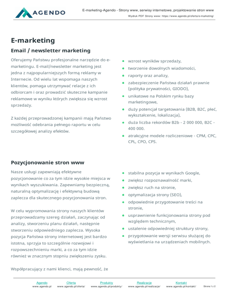 E-marketing-Agendo - Strony www, serwisy internetowe
