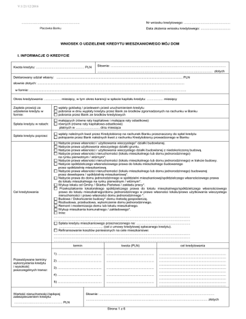 WNIOSEK O UDZIELENIE KREDYTU MIESZKANIOWEGO MÓJ