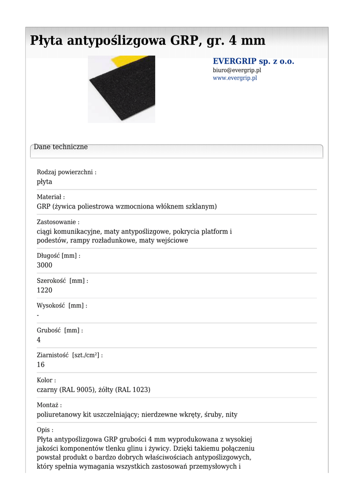 Płyta antypoślizgowa GRP, gr. 4 mm
