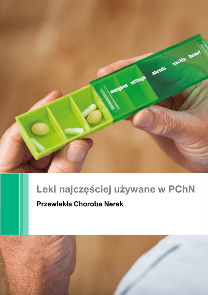Leki najczęściej używane w PChN Common Medicines used in CKD Chronic kidney disease – chapter 9 Przewlekła Choroba Nerek sponsored by Leki najczęściej używane w PChN Informacja ta ma służyć zrozumieniu, dlaczego należy zażywać przepisane leki. Istnieje wiele leków, które stosuje się do zwalczania objawów związanych z PChN. W celu ich kontroli możesz potrzebować jednego bądź więcej leków. Ilość przepisanych leków będzie uzależniona od nasilenia objawów. Jakie są najczęstsze objawy PChN? Najczęstsze objawy PChN to: Objawy Krótkie wyjaśnienie przyczyny Wysokie ciśnienie krwi Wysokie ciśnienie krwi może być przyczyną problemów z nerkami lub skutkiem zaburzeń czynności nerek ze względu na retencję płynów i soli. Obrzęki Wynikają z niedostatecznego usuwania płynów przez nerki, co prowadzi do gromadznia się płynów oraz obrzęków. 2 sponsored by Leki najczęściej używane w PChN Niedokrwistość Niska liczba krwinek czerwonych może być spowodowana zmniejszoną produkcją erytropoetyny (hormon produkowany przez nerki) Zmęczenie Może być skutkiem anemii lub narastania poziomu toksyn we krwi krążącej, których nerki nie są w stanie usunąć. Świąd Na skutek gromadzenia się we krwi toksyn, których nerki nie są w stanie usunąć. Może być również spowodowany złogami wapnia i fosforanu, osadzającymi sie pod skórą. Słabe kości Na skutek zmniejszenia aktywacji witaminy D i nadczynności przytarczyc. Witamina D zwiększa wytrzymałość kości. Niski poziom wapnia we krwi Na skutek zmniejszenia aktywacji witaminy D. Witamina D pomaga w absorpcji wapnia z pokarmów. Wysoki poziom fosforanów we krwi Głównie z powodu zmniejszenia wydalania fosforanów przez nerki. 3 sponsored by Leki najczęściej używane w PChN Nudności i wymioty Głównie ze względu na nagromadzenie się toksyn mocznicowych w organizmie. Mocznik i inne substancje odpadowe są usuwane przez nerki, gdy nerki nie funkcjonują prawidłowo dochodzi do gromadzenia sie tych produktów. Zmniejszenie apetytu Głównie ze względu na nagromadzenie się toksyn mocznicowych w organizmie. Mocznik i inne substancje odpadowe są usuwane przez nerki, gdy nerki nie funkcjonują prawidłowo dochodzi do gromadzenia sie tych produktów. Zaburzenia smaku Głównie ze względu na nagromadzenie się toksyn mocznicowych w organizmie. Mocznik i inne substancje odpadowe są usuwane przez nerki, gdy nerki nie funkcjonują prawidłowo dochodzi do gromadzenia sie tych produktów. Zaburzenia te często są odczuwane jako metaliczny posmak. Bezsenność (Zaburzenia snu) Głównie ze względu na nagromadzenie się toksyn mocznicowych w organizmie. Może być również związana ze świądem. 4 sponsored by Leki najczęściej używane w PChN Ogólne informacje dotyczące stosowania przepisanych leków Istnieje kilka ważnych punktów, których trzeba przestrzegać, aby uniknąć problemów związanych z przyjmowaniem większości leków: Zapoznaj się z ulotką dołączoną do każdego leku. Zachowaj ją, żebyś mógł z niej skorzystać w razie potrzeby. Nie zażywaj żadnych leków, które można kupić „bez recepty”, bez wcześniejszej konsultacji z lekarzem lub farmaceutą. Niektóre z tych leków mogą wchodzić w interakcje z przepisanymi lekami. To samo dotyczy preparatów ziołowych i suplementów diety, które można kupić w sklepach ze zdrową żywnością (np. olej z wątroby dorsza, ziele dziurawca). Nie udostępniaj swoich leków nikomu innemu, one są przepisane dla ciebie i mogą zaszkodzić innej osobie. Nie przyjmuj leków przepisanych komuś innemu, gdyż mogą ci zaszkodzić. Upewnij się, że właściwie przechowujesz leki. Niektóre muszą być przechowywane w lodówce, o czym zostaniesz poinformowany. Wszystkie leki powinny być przechowywane w chłodnym, suchym miejscu, niedostępnym dla dzieci. Nie gromadź leków; wszystkie niewykorzystane lub odstawione leki zanieś do apteki, aby mogły być właściwie zutylizowane. 5 sponsored by Leki najczęściej używane w PChN Leki na ciśnienie krwi Stwierdzono u ciebie wysokie ciśnienie krwi, co to oznacza? W poradni często mierzy się ciśnienie krwi. Norma to wynik pomiaru ciśnienia krwi poniżej 140/90 mmHg. W chorobie nerek korzystne jest obniżenie tej wartości do 130/80mmHg, a w przypadku cukrzycy nawet niżej. Uważa się, że ludzie, którzy ciągle mają wyniki pomiarów ciśnienia powyżej normy chorują na nadciśnienie tętnicze. Nadciśnienie tętnicze jest częste u osób z PChN, ze względu na nagromadzenie się soli i płynu wewnątrz organizmu. Jaki problem wynika z wysokiego ciśnienia krwi? Wysokie ciśnienie krwi powoduje uszkodzenie nerek. Niekontrolowane może doprowadzić do pogorszenia choroby nerek. Jakie leki trzeba będzie przyjmować? Istnieje wiele leków stosowanych w celu obniżenia wysokiego ciśnienia krwi. Rodzaj i dawka leku zostaną dobrane indywidualnie i będą uzależnione od dobrej tolerancji leku. Jeśli masz wątpliwości związane ze zleconymi lekami na ciśnienie, omów je z lekarzem, pielęgniarką lub farmaceutą. 6 sponsored by Leki najczęściej używane w PChN Leki na niedokrwistość Stwierdzono u ciebie anemię, co to oznacza? Niedokrwistość występuje, gdy masz mało czerwonych krwinek. Czerwone krwinki pomagają w transporcie tlenu po organizmie. Niska liczba krwinek czerwonych może powodować uczucie zmęczenia i zimna. Preparaty żelaza Przepisano ci preapraty żelaza, jak je stosować? Preparaty żelaza są używane w celu korygowania niedokrwistości, powszechnego problemu wśród osób z chorobami nerek. Jeśli masz anemię, nefrolog przepisze ci praparat żelaza. Dawka żelaza podawanego doustnie zależy od rodzaju zleconego leku (np. siarczan żelaza, glukonian żelaza czy fumaran żelaza). Jakie są główne działania niepożądane preparatów żelaza? Głównym skutkiem ubocznym preparatów żelaza jest podrażnienie przewodu pokarmowego, czy