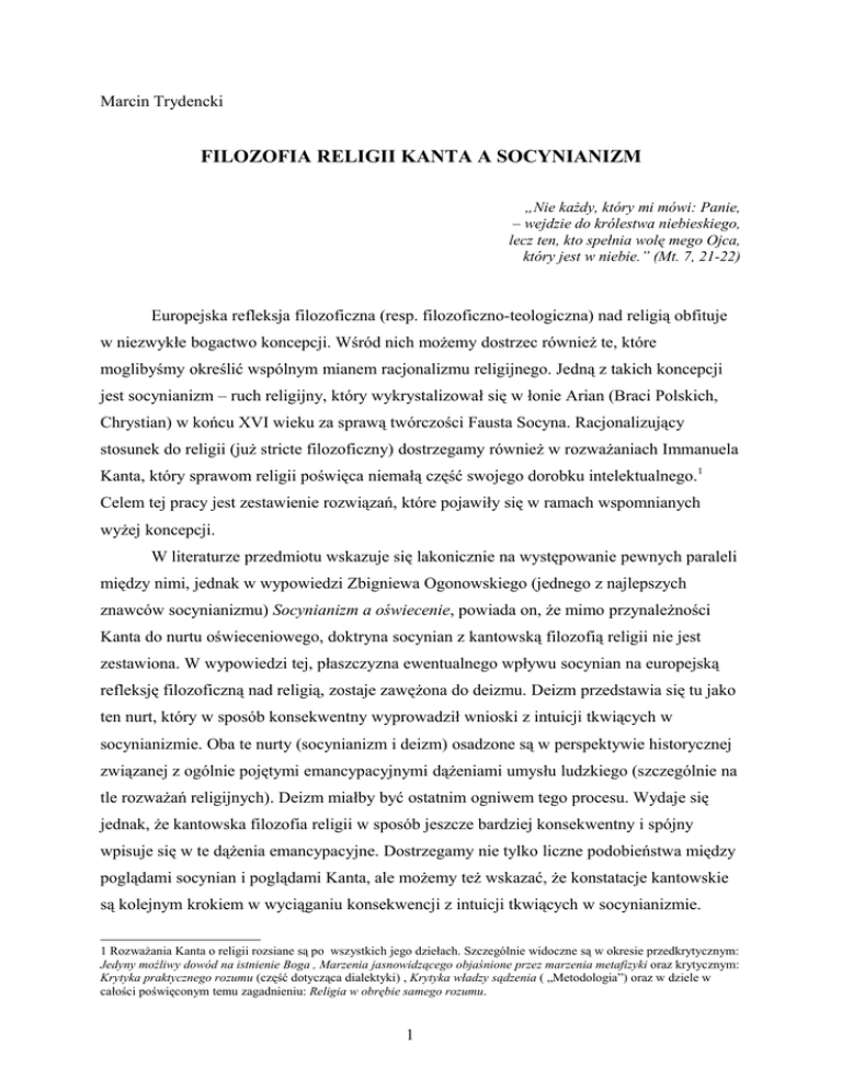 FILOZOFIA RELIGII KANTA A SOCYNIANIZM