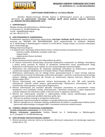 ZAPYTANIE OFERTOWE nr 13/2016/MGOK