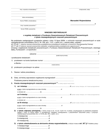 WNIOSEK INDYWIDUALNY o wypłatę świadczeń z Funduszu