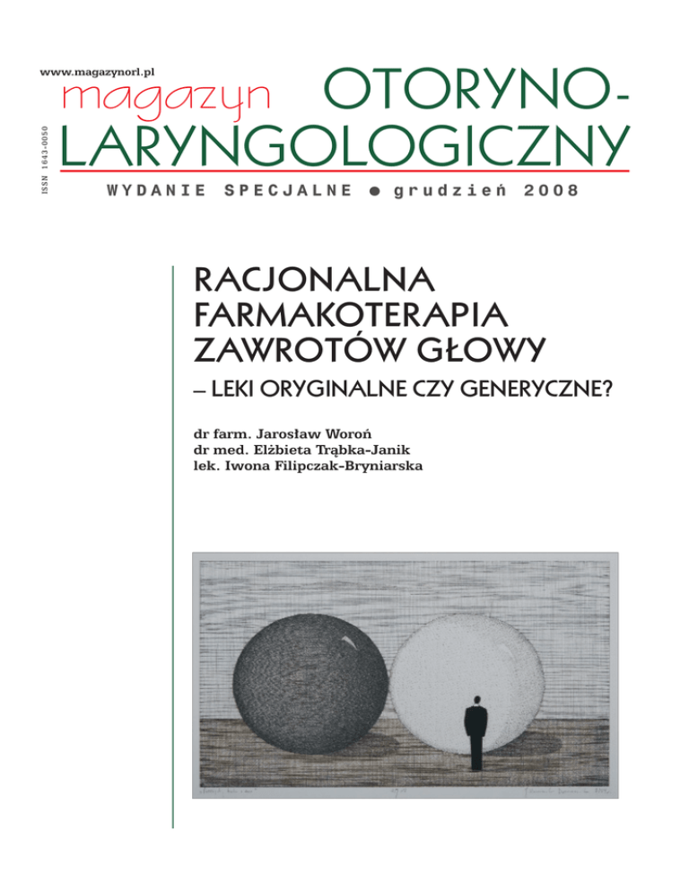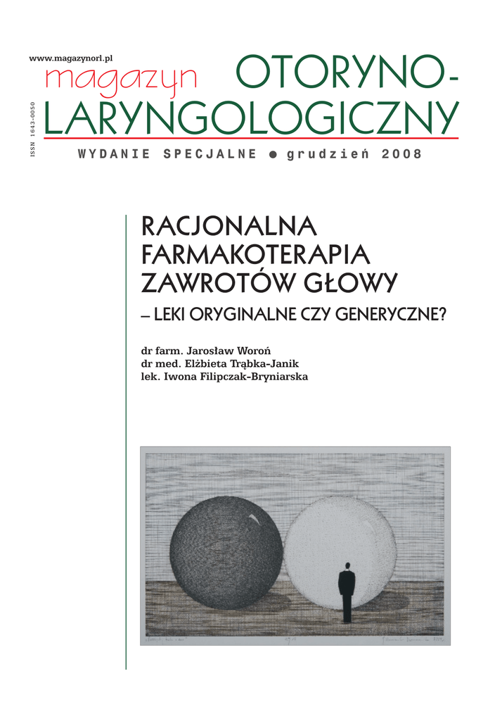 magazyn ISSN 1643-0050 www.magazynorl.pl OTORYNOLARYNGOLOGICZNY WYDANIE SPECJALNE ● grudzieƒ 2008 RACJONALNA FARMAKOTERAPIA ZAWROTÓW G¸OWY – LEKI ORYGINALNE CZY GENERYCZNE? dr farm. Jaros∏aw Woroƒ dr med. El˝bieta Tràbka-Janik lek. Iwona Filipczak-Bryniarska RACJONALNA FARMAKOTERAPIA ZAWROTÓW G¸OWY – LEKI ORYGINALNE CZY GENERYCZNE? dr farm. Jaros∏aw Woroƒ1, dr med. El˝bieta Tràbka-Janik2, lek. Iwona Filipczak-Bryniarska3 RATIONAL VERTIGO PHARMACOTHERAPY – BRAND-NAME OR GENERIC DRUGS? Jednà z najwa˝niejszych metod leczenia zawrotów g∏owy jest farmakoterapia. ˚eby mo˝na by∏o zaoferowaç pacjentowi skutecznà i jednoczeÊnie bezpiecznà farmakoterapi´, muszà zostaç spe∏nione liczne warunki, wÊród których najistotniejszy wydaje si´ dobór leku, i to zarówno pod wzgl´dem jego mechanizmu dzia∏ania, ryzyka wystàpienia objawów niepo˝àdanych, jak i ceny. Lekarz, który ma podjàç decyzj´ o wyborze farmakoterapii, staje niejednokrotnie przed dylematem: czy zastosowaç lek oryginalny, czy mo˝e w celu ograniczenia wydatków pacjenta zaproponowaç mu terapi´ lekiem generycznym? B∏´dem jest uto˝samianie kosztów terapii z kosztem pojedynczej dawki leku (tabletka, ampu∏ka), poniewa˝ kosztem farmakoterapii sà wszystkie elementy zwiàzane z przyjmowaniem przez pacjenta leku, w tym tak˝e koszty ewentualnych polekowych dzia∏aƒ niepo˝àdanych. Leki stosowane w farmakoterapii zawrotów g∏owy nale˝à do ró˝nych grup farmakologicznych (Litt 2004). Przedstawiono je w tabeli 1. W ostatnich latach nastàpi∏o zwi´kszenie udzia∏u leków generycznych wÊród preparatów stosowanych w farmakoterapii zawrotów g∏owy. W krajach europejskich leki generyczne stanowià 40–60% rynku leków. Zast´powanie leków oryginalnych generycznymi ma prowadziç do udost´pnienia nowoczesnych leków wi´kszej liczbie pacjentów oraz zmniejszaç koszty farmakoterapii, które ponoszone sà zarówno przez refundatora, jak i pacjentów. Ceny leków generycznych sà ni˝sze, gdy˝ ich producenci nie ponoszà kosztów badaƒ klinicznych, które mogà wynosiç ponad 70% kosztów wprowadzenia nowego preparatu na rynek. Effectiveness and safety of pharmacotherapy of vertigo depends to a large extent on the choice of drugs. Due to necessity of reducing the cost of running the entire health system in many countries more and more generic drugs are being registered in order to make them more accessible to a greater number of patients. We often forget that the effectiveness and tolerance to treatment using different preparations of drugs containing the same active substance may not be the same. Therefore, the fundamental question arises: in which groups of patients generic drugs can be used in place of brand-name drugs, which can also be very expensive, without the risk of making the treatment less effective and without increasing the risk of side effects occuring? KEY WORDS: generic drugs, vertigo, pharmacotherapy artyku∏ sponsorowany 1 Uniwersytecki OÊrodek Monitorowania i Badania Niepo˝àdanych Dzia∏aƒ Leków, Zak∏ad Farmakologii Klinicznej Katedry Farmakologii Collegium Medicum Uniwersytetu Jagieloƒskiego 2 Klinika Neurologii Instytutu Neurologii Collegium Medicum Uniwersytetu Jagieloƒskiego 3 Oddzia∏ Kliniczny Leczenia Bólu, Opieki i Farmakologii Klinicznej Szpitala Uniwersyteckiego w Krakowie 2 Tabela 1. Mechanizmy dzia∏ania oraz dzia∏ania niepo˝àdane leków stosowanych w farmakoterapii zawrotów g∏owy. Grupa leków (lek) Mechanizm dzia∏ania Najcz´stsze dzia∏ania niepo˝àdane Betahistyna Ma wp∏yw na receptory histaminowe w OUN, Bóle g∏owy, osutka, nudnoÊci. wykazuje dzia∏anie antagonistyczne w stosunku do presynaptycznych autoreceptorów typu H3 oraz wykazuje dzia∏anie agonistyczne w stosunku do receptorów postsynaptycznych H1 i H2. AktywnoÊç histaminergiczna leku dzia∏a rozszerzajàco na naczynia wi´zad∏a spiralnego i prà˝ka naczyniowego. Dochodzi do poprawy krà˝enia tylnojamowego, zw∏aszcza u pacjentów w podesz∏ym wieku z objawami niewydolnoÊci kr´gowo-podstawnej. Nast´puje wzrost aktywnoÊci jàder przedsionkowych, co z kolei wywiera korzystny wp∏yw na przebieg oÊrodkowej kompensacji. Leki przeciwhistaminowe I generacji (dimenhydrinat, klemastyna, hydroksyzyna) Hamujà receptory H1 zarówno na obwodzie, jak i w strukturach OUN ze wzgl´du na dobrà penetracj´ przez barier´ krew/mózg; wykazujà efekt sedatywny, blokujà receptory muskarynowe. Leki neuroleptyczne Wykazujà wp∏yw na receptory D2, α1-adrenergiczne, klasyczne H1, dzia∏ajà cholinolitycznie; dzia∏ajàc na receptory (chloropromazyna, opuszki, wykazujà efekt przeciwwymiotny. prometazyna, tietylperazyna) Leki przeciwhistaminowe I generacji hamujà proces oÊrodkowej kompensacji. Nale˝y je stosowaç ostro˝nie i krótko w leczeniu objawów szoku przedsionkowego. Ze wzgl´du na dobrà penetracj´ do struktur OUN mogà powodowaç nadmiernà sedacj´ oraz wywo∏ywaç objawy cholinolityczne. Dyskinezy, zaburzenia rytmu serca, hipotonia, zaburzenia widzenia, zaburzenia oddawania moczu, zaparcia, wzrost ciÊnienia Êródga∏kowego, nadmierna sedacja. Leki zmniejszajàce nap∏yw jonów wapnia do komórki (cynnaryzyna, flunaryzyna, nimodypina) Hamujà nap∏yw jonów wapnia do komórek przez D∏ugotrwa∏e stosowanie tej grupy specyficzne bàdê niespecyficzne blokowanie leków mo˝e niekorzystnie wp∏ywaç kana∏ów wapniowych; wykazujà efekt antyagregacyjny. na przebieg oÊrodkowej kompensacji uszkodzenia b∏´dnika. Cynnaryzyna mo˝e powodowaç sennoÊç, dyskinezy, objawy parkinsonizmu oraz objawy depresji, zw∏aszcza u pacjentów w podesz∏ym wieku; nimodypina i flunaryzyna mogà byç przyczynà wystàpienia hipotonii. Nicergolina Wykazuje dzia∏anie α1-adrenolityczne oraz hamuje Hipotonia, zawroty g∏owy, bradykardia, agregacj´ p∏ytek krwi, usprawniajàc krà˝enie. dolegliwoÊci ˝o∏àdkowe, uczucie goràca, zaczerw