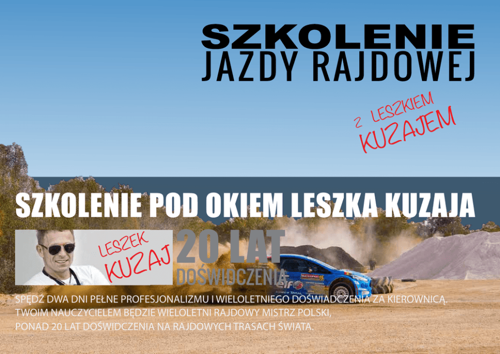 Z M E I K LESZ M E J ZA KU SZKOLENIE POD OKIEM LESZKA KUZAJA SPĘDŹ DWA DNI PEŁNE PROFESJONALIZMU I WIELOLETNIEGO DOŚWIADCZENIA ZA KIEROWNICĄ. TWOIM NAUCZYCIELEM BĘDZIE WIELOLETNI RAJDOWY MISTRZ POLSKI, PONAD 20 LAT DOŚWIDCZENIA NA RAJDOWYCH TRASACH ŚWIATA. PROFESJONALNY TOR SZKOLENIOWY DŁUGOŚC: 3 KM NAWIERZCHNIA: SZUTER ZABEZPIECZENIE: KARETKA, STRAŻ POŻARNA FORD FIESTA PROTO V2 MOC: 300 KM NAPĘD: 4 X 4 SKRZYNIA: SEKWENCYJNA FOTELE: KUBEŁKOWE PASY: SZELKOWE 6. PUNKTOWE KOMUNIKACJA: INTERKOM SZUTROWE OPONY JAZDY CROSS KARTEM PRZEJAZD W ROLI PILOTA Z LESZEKIEM KUZAJEM CROSS KART - BARRACUDA ZAWIESZENIE DWU WAHACZOWE PRĘDKOŚĆ MAX: 200 KM/H KLATKA BEZPIECZEŃSTWA AMORTYZATORY O SKOKU 45 CM SZUTROWE OPONY SILNIK O MOCY 200 KM SEKWENCYJNA SKRZYNIA BIEGÓW DLA GOŚCI WYKAZUJĄCYCH DUŻE UMIEJĘTNOŚCI ZA KIEROWNICĄ - PRZEJAZD BUGGY 3 NAJLEPSZE OSOBY OTRZYMAJĄ JAZDĘ FORDEM FIESTĄ R2 PRZYKŁADOWY PLAN IMPREZY: DZIEŃ 1 - PIĄTEK koordynował prace zespołu Janusza Kuliga. 18:00 SZKOLENIE Z ZAKRESU PILOTAŻU RAJDOWEGO ( SZKOLENIE PRZEPROWADZI TOMASZ PACEK ) Obecnie koordynator zespołu Bryana Bouffier DZIEŃ 2 SOBOTA 09:30 SZKOLENIE Z ZAKRESU JAZDY RAJDOWEJ ( SZKOLENIE PRZEPROWADZI LESZEK KUZAJ ) 12:00 JAZDY Z LESZKIEM KUZAJEM, JAZDY BUGGY BARRACUDA 17:00 PRZEJAZD FORDEM FIESTĄ R2 DZIEŃ 3 NIEDZIELA ATRAKCJE TURYSTYCZNE DLA ZAINTERESOWANYCH HISTORIĄ II WOJNY ŚWIATOWEJ PRZEWODNIK RYSZARD KRAWCZYK