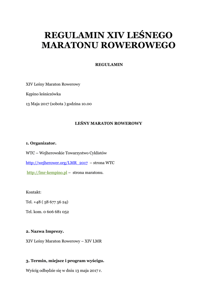 REGULAMIN XIV LEŚNEGO MARATONU ROWEROWEGO
