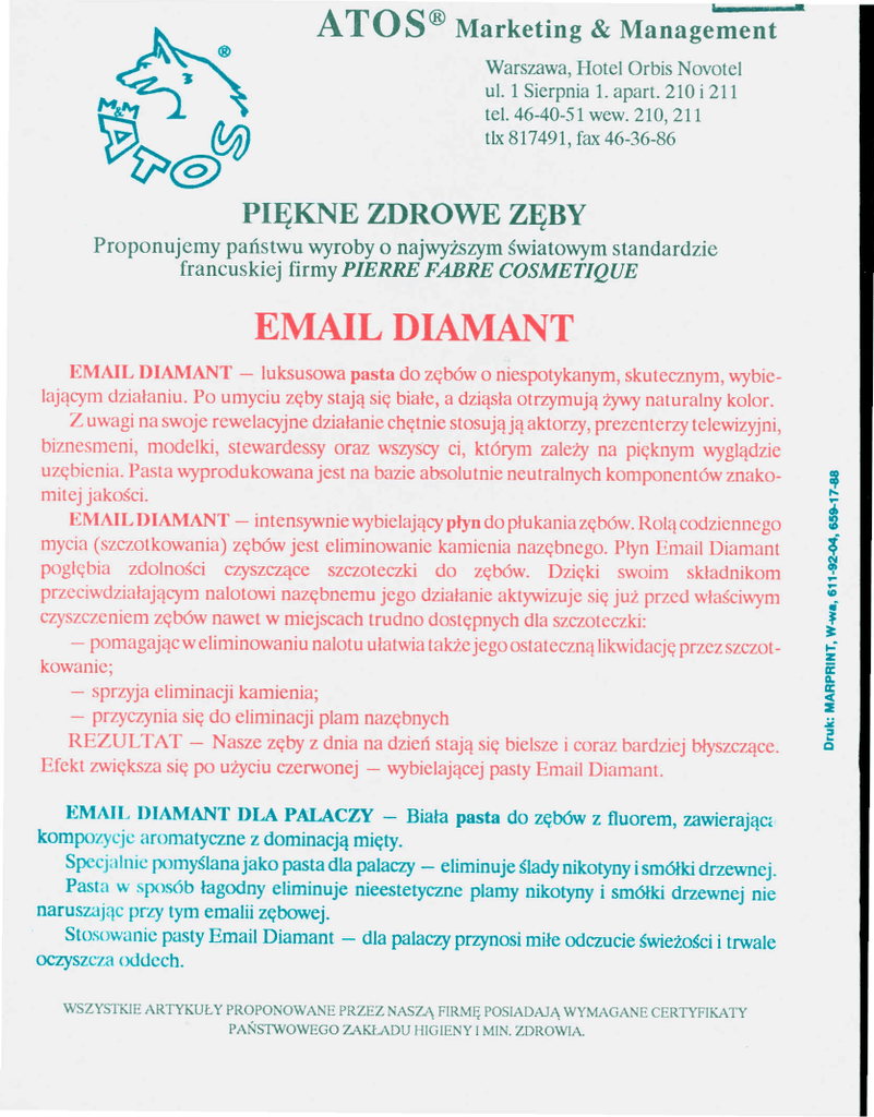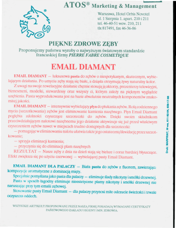 EMAIL DIAMANT - luksusowa pasta do z{(bów o niespotykanym, skutecznym, wybielającym działaniu. Po umyciu z{(by stają się białe, a dziąsła otrzymują żywy naturalny kolor.