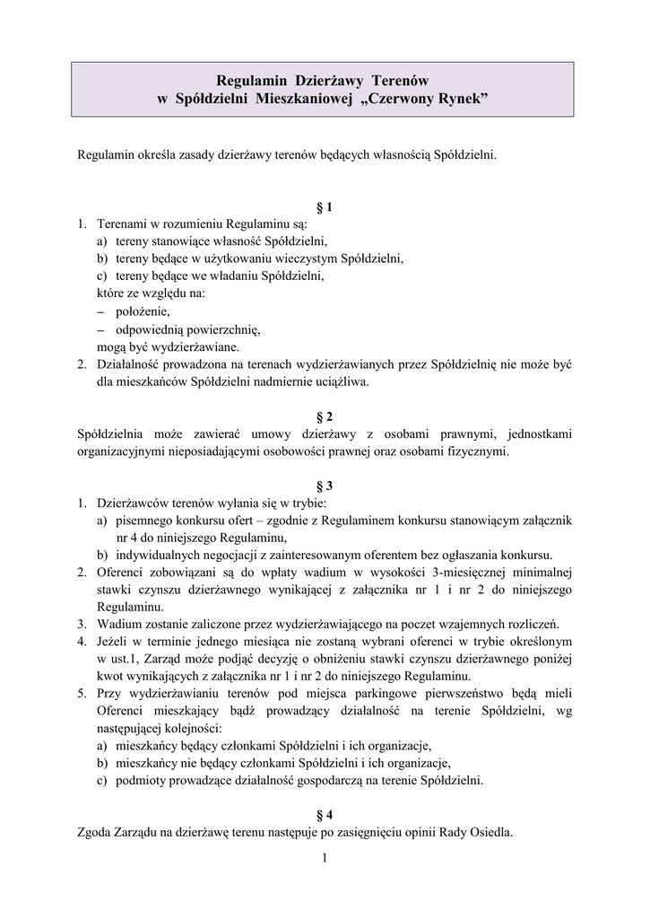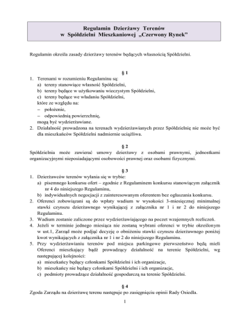 Regulamin Dzierżawy Terenów w Spółdzielni Mieszkaniowej