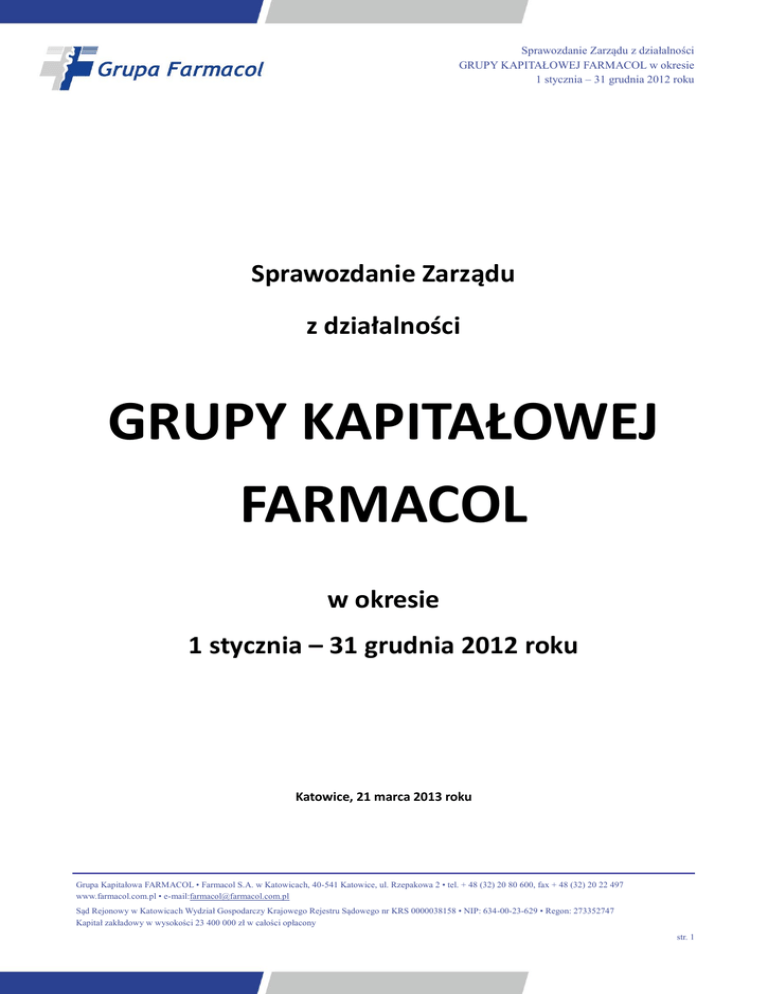 Sprawozdanie Zarządu z działalności GK Farmacol