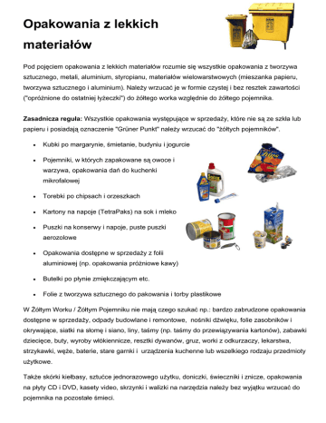 papieru i posiadają oznaczenie "Grüner Punkt" należy wrzucać do "żółtych pojemników".