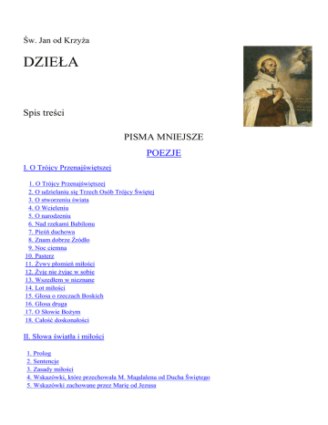 1. Przytacza pierwszą strofę. Mówi o dwóch różnych nocach, przez które przechodzą osoby duchowe,