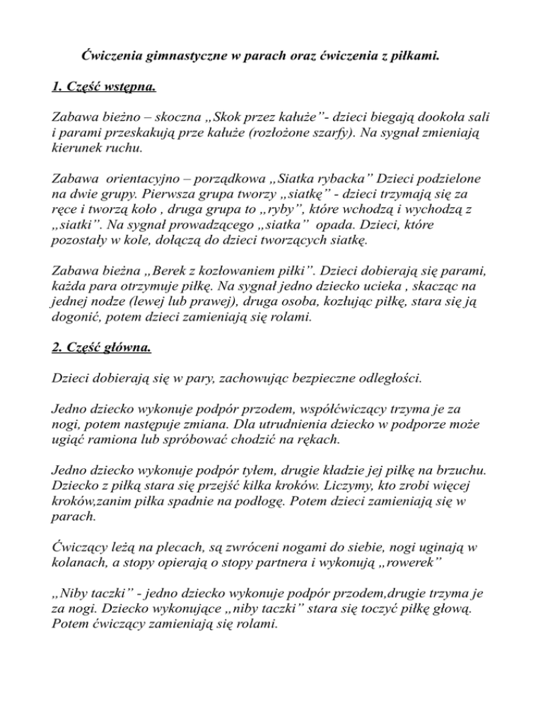 Ćwiczenia gimnastyczne w parach oraz ćwiczenia z piłkami. 1