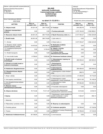 BILANS jednostki budżetowej, i samorządowego zakładu