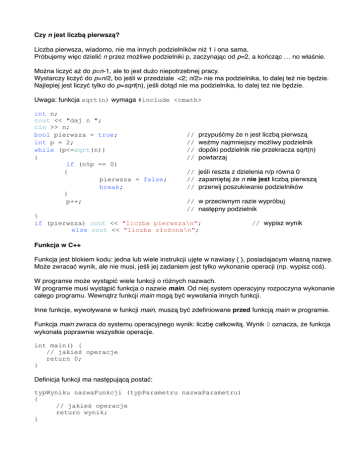 Uwaga: funkcja sqrt(n) wymaga #include <cmath>