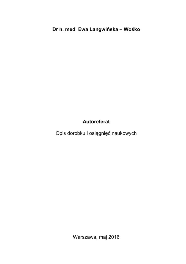 Autoreferat dr E. Langwińskiej