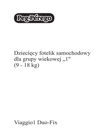 Dzieciêcy fotelik samochodowy dla grupy wiekowej „1" (9 - 18 kg) Viaggio1 Duo-Fix Viaggio1 Duo-Fix UNIVERSAL CATEGORY9-18Kg Y Fotelik VIAGGIO 1 DUO-FIX zamontowany w samochodzie za pomoc¹ 3-punktowych pasów bezpieczeñstwa. Viaggio1 Duo-Fix + Isofix Base 0+1 SEMI-UNIVERSAL Classe A CATEGORY 9-18Kg Y Fotelik VIAGGIO 1 DUO-FIX zabezpieczony dodatkowo w samochodzie za pomoc¹ systemu isofix. Przeczytaj instrukcjê obs³ugi bazy „isofix 0+1" aby poznaæ procedury jej monta¿u. UNIVERSAL CATEGORY OK NO O N NO NO O NO NO A B 1 2 3 4 A B 5 6 A B 7 8 SEMI-UNIVERSAL CATEGORY NO O NO O NO N A OK B 9 10 B A 11 click 12 B A A B C 13 15 OK 14 16 C A A B 17 18 19 20 A 21 22 B DC C 23 24 OK 25 26 NO NO A B 27 28 A 29 30 31 32 B A 33 34 A 35 36 37 38 0409 39 Dziêkujemy za wybór produktu Peg Perego. Firma Peg Perego posiada certyfikat ISO 9001 Charakterystyka produktu Fotelik samochodowy, grupa 1, kategoria „Universal” * Fotelik Viaggio 1 Duo-Fix spe³nia europejsk¹ normê UN/ECE R44/04 dla dzieci o wadze 9-18 kg (od ok. 9 miesi¹ca do ok. 4 roku ¿ycia). * Mo¿na go zainstalowaæ w wiêkszoœci samochodów. * Fotelik mo¿e byæ poprawnie zamontowany w samochodach, których instrukcja obs³ugi podaje, ¿e s¹ one zgodne z systemem „Universal” dla grupy 1. * Fotelik zosta³ sklasyfikowany jako „Universal” zgodnie z kryteriami zaostrzonymi w stosunku do poprzednich modeli nie posiadaj¹cych tego oznaczenia. * Fotelik mo¿e byæ u¿ywany wy³¹cznie w zatwierdzonych samochodach wyposa¿onych w statyczne lub bezw³adnoœciowe 3-punktowe pasy bezpieczeñstwa, zgodne z unijn¹ norm¹ UN/ECE nr 16 lub równowa¿nym rozporz¹dzeniem. * Fotelika nie mo¿na mocowaæ za pomoc¹ 2-puntowych lub biodrowych pasów bezpieczeñstwa. Fotelik samochodowy, grupa 1 klasa A, kategoria „Semi-Universal” z baz¹ isofix 0+1 * Fotelik spe³nia europejskie normy UN/ECE R44/04 dla dzieci o wadze 9-18 kg (od ok. 9 miesi¹ca do ok. 4 roku ¿ycia). * U¿ywanie fotelika razem z baz¹ isofix zwiêksza bezpieczeñstwo przewo¿onego w nim dziecka. * Zawsze sprawdzaj, czy mocowanie bazy isofix zosta³o prawid³owo po³¹czone z mechanizmami isofix znajduj¹cymi siê w samochodzie. SprawdŸ listê samochodów posiadaj¹cych ten system lub spytaj dystrybutora marki Twojego samochodu. WA¯NE! * Viaggio 1 Duo-Fix musi byæ montowane przodem do normalnego kierunku jazdy. * Nie montuj tego fotelika na siedzeniach, które s¹ usytuowane bokiem lub ty³em do kierunku jazdy. * Zalecamy monta¿ fotelika na tylnym siedzeniu po przeciwnej stronie ni¿ fotel kierowcy. * Je¿eli fotelik ma byæ zamontowany na przednim siedzeniu, umieœæ go tak daleko od deski rozdzielczej jak to tylko mo¿liwe. * Produkt ten posiada w³asny numer seryjny. * W przypadku problemów z zamontowaniem fotelika Viaggio 1 Duo-Fix w samochodzie, unieœ lub wyjmij z fotela zag³ówki. * Je¿eli samochód ma schowki w pod³odze, w miejscu gdzie powinna staæ noga otwórz schowek, wyjmij z niego przewo¿one przedmioty i wtedy zamontuj bazê. UWAGA ! Przeczytaj uwa¿nie instrukcjê obs³ugi przed rozpoczêciem u¿ytkowania fotelika. Stosowanie siê do podanych w niej zaleceñ i wskazówek zapobiegnie powstaniu niebezpiecznych dla dziecka sytuacji. * obs³ug¹ i monta¿em fotelika mog¹ zajmowaæ siê wy³¹cznie osoby doros³e. * Procedury monta¿u i obs³ugi musz¹ byæ wykonywane bez siedz¹cego w foteliku dziecka. * Podczas jazdy samochodem nigdy nie trzymaj dziecka w ramionach lub na kolanach, zawsze sadzaj je w foteliku. W przypadku nag³ego hamowania, nawet przy niewielkich prêdkoœciach, dziecko wypadnie Tobie z r¹k. * Nie wk³adaj palców w mechanizmy fotelika. * Podczas podró¿y zwracaj szczególn¹ uwagê by baga¿ lub inne przedmioty nie zrani³y dziecka podczas nag³ego hamowania lub wypadku. * Nie stosuj innych metod instalacji ni¿ podane w instrukcji gdy¿ mo¿e to skutkowaæ oderwaniem siê fotelika od siedziska samochodowego. * Zawsze upewniaj siê, ¿e 3-punktowe pasy bezpieczeñstwa s¹ mocno napiête i nie s¹ poskrêcane. Nale¿y je wymieniæ je¿eli uleg³y znacznym obci¹¿eniom spowodowanych wypadkiem. * Nigdy nie pozostawiaj dziecka bez opieki, obserwuj je nawet podczas drzemki. * Nigdy nie wyjmuj dziecka z fotelika podczas jazdy samochodem. * Upewniaj siê czy fotelik nie jest blokowany przez ruchome czêœci siedzenia samochodowego lub przez drzwi. * Wyreguluj poprawnie d³ugoœæ i napiêcie pasów w foteliku tak by nie by³y one zbyt napiête, a dziecku podró¿owa³o siê wygodnie. Sprawdzaj czy pasy nie s¹ skrêcone i czy dziecko ich nie rozpiê³o. * Fotelik nie jest przeznaczony do spania przez d³u¿szy czas. * Nie pozostawiaj fotelika w samochodzie wystawionym na d³ugotrwa³e oddzia³ywanie promieni s³onecznych - niektóre elementy fotelika mog¹ siê zbyt nagrzaæ i oparzyæ delikatn¹ skórê dziecka. Zawsze sprawdzaj fotelik zanim posadzisz w nim dziecko. * Nie u¿ywaj fotelika bez jego fabrycznej tapicerki, nie mo¿e byæ ona wymieniona na inn¹, niedopuszczona przez producenta, poniewa¿ jest jego integraln¹ czêœci¹ i systemu bezpieczeñstwa. * Nie u¿ywaj fotelika bez ochraniaczy na pasach, które s¹ integraln¹ czêœci¹ fotelika i systemu bezpieczeñstwa. * Nie usuwaj z fotelika ¿adnych naklejek ani wszywek, gdy¿ mog³oby to oznaczaæ, ¿e jest on niezgodny z normami. * Nie u¿ywaj fotelika jeœli nosi on oznaki uszkodzenia lub brakuje w nim jakiegoœ elementu, lub pochodzi z tzw. drugiej rêki, lub bra³ udzia³ w wypadku, który móg³ spowodowaæ uszkodzenie jego stryktury. * Nie modyfikuj produktu. * Aby dokonaæ napraw lub dokupiæ brakuj¹cy element skontaktuj siê z serwisem firmy Akord. * Fotelik musi byæ zawsze przypiêty pasami, nawet gdy nie przewozisz w nim dziecka. Podczas nag³ego hamowania lub wypadku mo¿e on zraniæ przebywaj¹ce w samochodzie osoby. * Nie u¿ywaj fotelika po up³ywie 5 lat od daty produkcji - naturalne starzenie siê niektórych elementów mo¿e spowodowaæ ,¿e ni