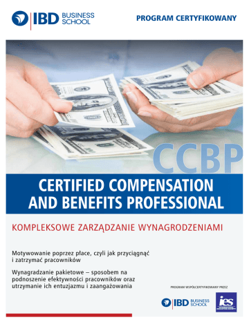 PROGRAM CERTYFIKOWANY CCBP Certified Compensation and Benefits Professional Kompleksowe zarządzanie wynagrodzeniami Motywowanie poprzez płace, czyli jak przyciągnąć i zatrzymać pracowników Wynagradzanie pakietowe – sposobem na podnoszenie efektywności pracowników oraz utrzymanie ich entuzjazmu i zaangażowania Program współcertyfikowany przez O PROGRAMIE Certified Compensation and Benefits Professional (CCBP) to kompendium praktycznych umiejętności dotyczących budowania i wdrażania systemu wynagrodzeń w firmie, wiedzy o zasadach tworzenia opisów stanowisk i ich wartościowania oraz siatek płac. Szkolenie pozwala gruntownie i w usystematyzowany sposób poznać zagadnienia związane z wynagrodzeniami pracowników i różnymi formami ich motywowania. dr Anna Bugalska Wiceprezes Zarządu ds. Doradztwa i Badań Organizacyjnych Dyrektor Programowy Centrum Eksperckiego – Zarządzanie Kapitałem Ludzkim GRUPA DOCELOWA Dyrektorzy HR Menedżerowie HR Właściciele, przedstawiciele kadry zarządzającej Specjaliści działów HR, odpowiadający za tworzenie systemów motywacyjnych Osoby planujące udział w projekcie budowania systemów wynagrodzeń w organizacji Korzyści dla firm i uczestników Nabycie biegłości w procesie profesjonalnego i zgodnego z najwyższymi standardami tworzenia opisów stanowisk Umiejętność tworzenia założeń do budowy systemów płac zasadniczych na potrzeby – wewnętrzne i dotyczące współpracy z firmami zewnętrznymi – samodzielnego opracowania narzędzia lub formułowania oczekiwań w stosunku do firmy doradczej Umiejętność tworzenia systemów premiowych i motywacyjnych na potrzeby samodzielnego opracowania narzędzia lub formułowania oczekiwań w stosunku do firmy doradczej Podniesienie efektywności procesów zarządzania wynagrodzeniami w organizacji REFERENCJE Szkolenie Certified Compensation and Benefits Professional organizowane przez IBD Business School (d. Instytut Rozwoju Biznesu) zawierało szereg zagadnień dotyczących budowania i wdrażania systemów wynagrodzeń, zasad tworzenia opisów stanowisk pracy, ich wartościowania oraz tworzenia siatek płac. Program szkolenia był tak zorganizowany, że zarówno osoby posiadające doświadczenie w powyższych obszarach, jak i te będące na początku swojej drogi mogły zdobyć i pogłębić wiedzę. Podczas szkolenia omawialiśmy mnóstwo case studies, a także wykonywaliśmy szereg zadań praktycznych, co pomagało zrozumieć omawiane zagadnienia i przekonać się, jak krok po kroku przechodzić przez kolejne etapy budowy systemu zarządzania wynagrodzeniami w organizacji. Podczas szkolenia każdy z uczestników mógł także podzielić się swoimi doświadczeniami, a wiele z trudniejszych przypadków było analizowanych razem z prowadzącą, co pozwoliło dostrzec różnorodne podejście w różnych organizacjach do tematu. Wszystko to daje ogromną wiedzę, ale też uczula na konieczną elastyczność w podejściu do potrzeb i możliwości danej organizacji w zarządzaniu wynagrodzeniami. To bardzo cenne doświadczenie. Gorąco polecam. Jolanta Fila-Szyling Recruitment Manager/Client Service Manager jfs-consulting Ramowy program ETAP ZAKRES METODY I NARZĘDZIA Literatura do przeczytania przed szkoleniem Sesja I System wynagrodzeń pakietowych Projektowanie systemów wynagrodzeń pakietowych w organizacji Action learning Case study PERSONAL DEVELOPMENT PROGRAM Zadania wdrożeniowe, lektury do przeczytania w domu Sesja II Wynagrodzenie zasadnicze narzędziA do budowy wynagrodzeń zasadniczych Kwestionariusze Checklisty dotyczące przebiegu etapów procesu Zadania wdrożeniowe, lektury do przeczytania w domu Sesja III Wynagrodzenie ZMIENNE Wykład systemowa ocena efektów pracy jako narzędzie do budowy wynagrodzeń Ćwiczenia indywidualne Ćwiczenia grupowe DODATKOWO Wzory dokumentów do wykorzystania przez uczestników Kadra wykładowców IBD Business School to wysokiej klasy specjaliści, z bogatym doświadczeniem doradczym w obszarze zarządzania kapitałem ludzkim, wartościowania stanowisk pracy, tworzenia systemów premiowych i wynagrodzeń pakietowych. Dr Anna Bugalska – Wiceprezes Zarządu ds. Doradztwa i Badań Organizacyjnych oraz Dyrektor Programowy Centrum Eksperckiego – Zarządzanie Kapitałem Ludzkim, senior konsultant i senior trener, praktyk biznesu z wieloletnim doświadczeniem, autorka wielu naukowych publikacji z zakresu Human Capital Management. Paweł Szabelewski – praktyk biznesu, konsultant w obszarze HR; specjalizuje się m. in. w zakresie projektowania organizacji, strategii zarządzania zasobami ludzkimi, wartościowania stanowisk pracy, wynagradzania. Ma doświadczenia w pracy doradczej dla branż: farmaceutycznej, FMCG, produkcji budowlanej, handlowej i finansowej. Certified Compensation and Benefits Professional (CCBP) Czas trwania: 3 dwudniowe sesje, 48 h Certified Compensation and Benefits Professional jest realizowany także w formule zamkniętej. Szczegółowe informacje na: ibd.pl Dział Programów Otwartych tel.: +48 (22) 768 20 22 kom.: +48 695 330 033 e-mail: [email protected] Beata Wiernicka-Bełz – senior konsultant i senior trener w IBD Business School, specjalista w zakresie budowania i wdrażania nowoczesnych rozwiązań HR, w tym w obszarze ocen okresowych i ścieżek karier, certyfikowany trener HR, doświadczony praktyk biznesu. Biura Obsługi Klienta ul. Panieńska 9 lok. 1, 03-704 Warszawa tel. +48 (22) 618 85 83, faks +48 (22) 618 51 59 ul. Wyzwolenia 63, 05-140 Serock tel. +48 (22) 782 78 87, faks +48 (22) 782 73 91 [email protected] ibd.pl Green Park Conference Centre ul. Wyzwolenia 63, 05-140 Serock tel. +48 (22) 782 78 87, e-mail: [email protected] Sienna Training Centre ul. Sienna 73, 00-833 Warszawa tel. +48 (22) 820 29 11, e-mail: [email protected] osrodekszkoleniowy.pl