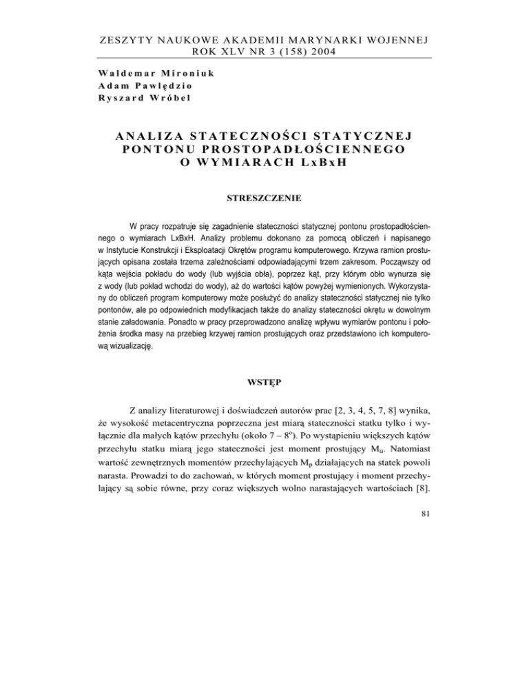 ANALIZA STATECZNOŚCI STATYCZNEJ PONTONU