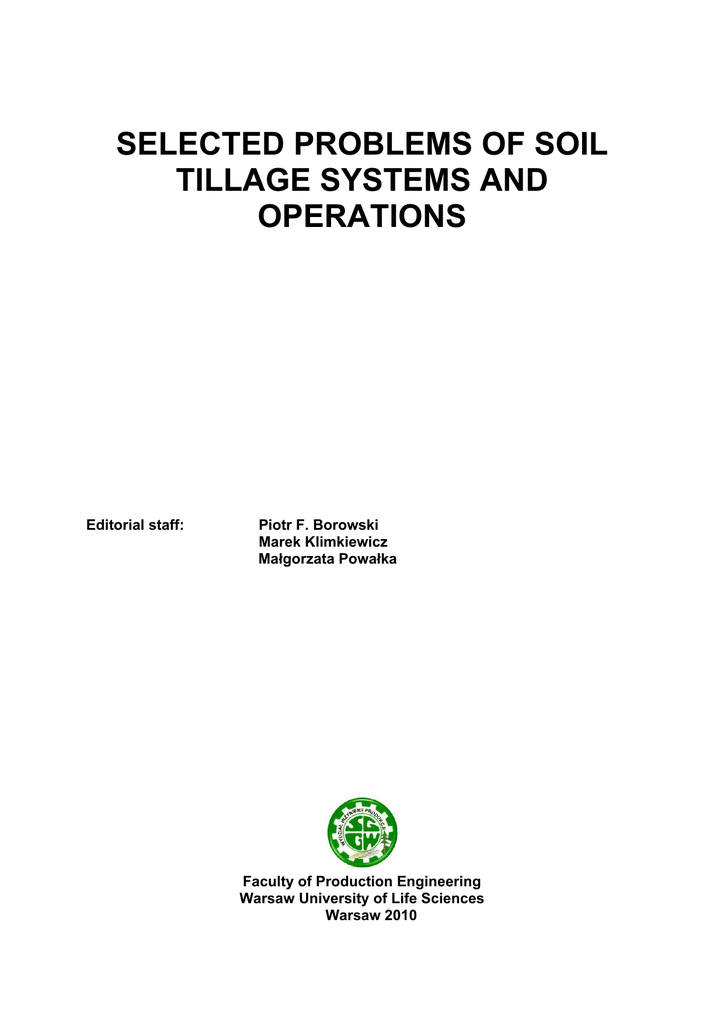 selected problems of soil tillage systems and operations
