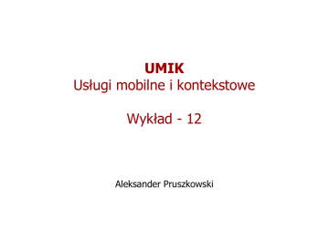 UMIK Usługi mobilne i kontekstowe Wykład - 12 - MEAG-WWW