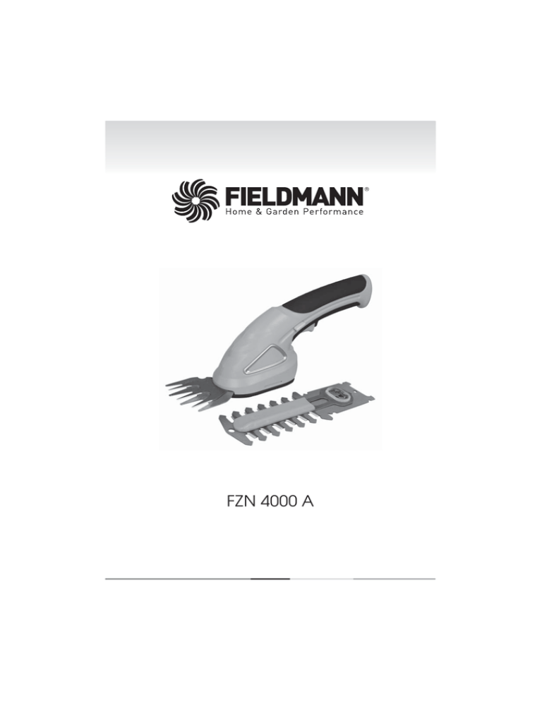 FZN 4000 A Spis treści 67 PL Nożyce akumulatorowe INSTRUKCJA OBSŁUGI Dziękujemy za zakupienie akumulatorowych nożyc ogrodowych. Zanim zaczniesz z nich korzystać, przeczytaj uważnie niniejszą instrukcję obsługi i zachowaj ją do wglądu. SPIS TREŚCI 1. OGÓLNE ZASADY BEZPIECZEŃSTWA ...............................................................................................................69 Ważne ostrzeżenia dotyczące bezpieczeństwa ......................................................................................69 Opakowanie.................................................................................................................................................................69 Instrukcja obsługi........................................................................................................................................................69 2. WYJAŚNIENIE TABLICZEK ZE WSKAZÓWKAMI ZNAJDUJĄCYCH SIĘ NA MASZYNIE ................70 Symbole na ładowarce..........................................................................................................................................71 3. OPIS URZĄDZENIA I ZAWARTOŚĆ DOSTAWY ..............................................................................................72 Opis maszyny (por. Rys. 1) .....................................................................................................................................72 Zawartość dostawy ...................................................................................................................................................72 4. MONTAŻ URZĄDZENIA.............................................................................................................................................73 5. PRZED ROZPOCZĘCIEM UŻYCIA .......................................................................................................................73 Ważne wskazówki bezpieczeństwa dotyczące ładowarki ................................................................73 Ważne wskazówki bezpieczeństwa dotyczące akumulatora ..........................................................74 Ważne wskazówki bezpieczeństwa dotyczące ładowania ..............................................................75 Ładowanie (rys. 2) ....................................................................................................................................................75 6. URUCHOMIENIE ..........................................................................................................................................................76 Obsługa urządzenia (rys. 3) .................................................................................................................................76 Uruchamianie nożyc ...............................................................................................................................................76 Wyłączanie nożyc ....................................................................................................................................................76 7. WYMIANA PROWADNIC ........................................................................................................................................76 8. WSKAZÓWKI DOTYCZĄCE PRAWIDŁOWEGO UŻYCIA ...........................................................................77 9. WSKAZÓWKI DOTYCZĄCE UŻYCIA ..................................................................................................................77 Obsługa ..........................................................................................................................................................................77 Cel użycia.......................................................................................................................................................................78 Instrukcja użycia .........................................................................................................................................................78 Likwidacja akumulatora ........................................................................................................................................79 Bezpieczeństwo elektryczne ................................................................................................................................79 10. KONSERWACJA I PRZECHOWYWANIE ...........................................................................................................79 Konserwacja .................................................................................................................................................................79 Konserwacja .................................................................................................................................................................80 Ostrzenie prowadnicy do trawy (rys. 8) ........................................................................................................80 11. DANE TECHNICZNE ...................................................................................................................................................80 12. LIKWIDACJA ..................................................................................................................................................................81 NOŻYCE AKUMULATOROWE INSTRUKCJA OBSŁUGI PL 68 Spis treści Wskazówki i informacje dotyczące gospodarki zużytym opakowaniem...................................81 13. DEKLARACJA ZGODNOŚCI..................................................................................................................................82 FZN 4000 A Ogólne zasady bezpieczeństwa 69 PL 1. OGÓLNE ZASADY BEZPIECZEŃSTWA Ważne ostrzeżenia dotyczące bezpieczeństwa Starannie rozpakuj wyrób, zwracając uwagę, by nie wyrzucić żadnej części materiału opakowaniowego, zanim nie znaj